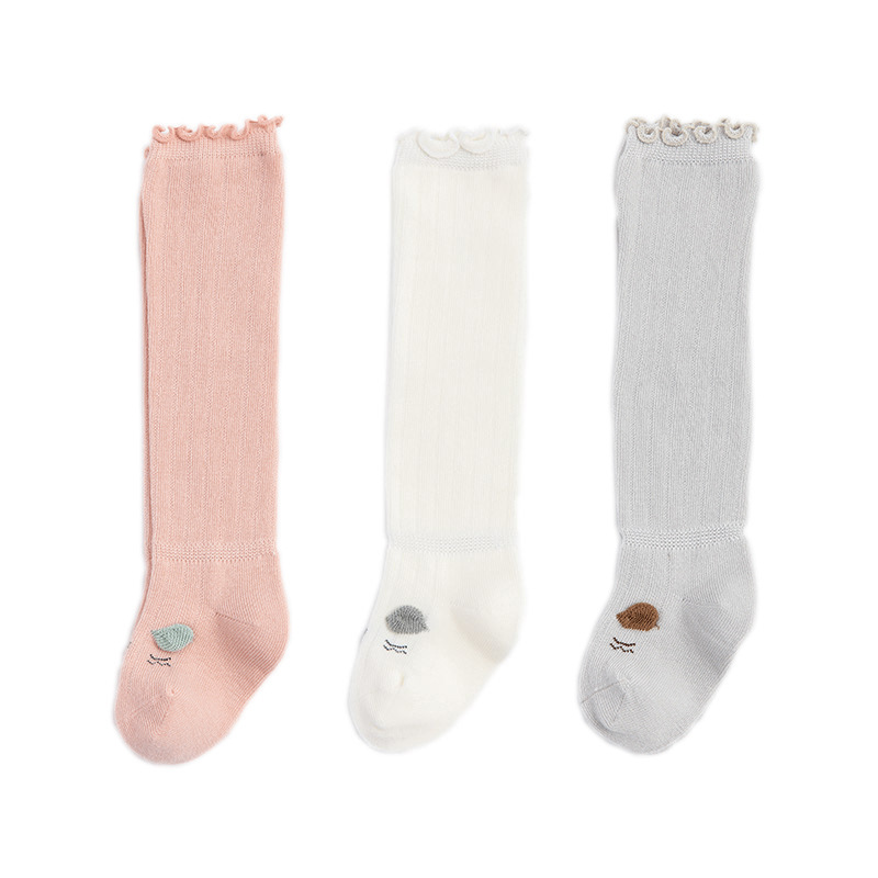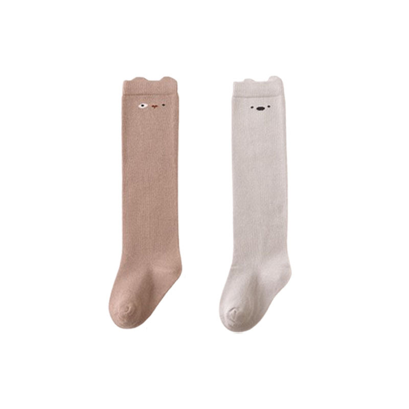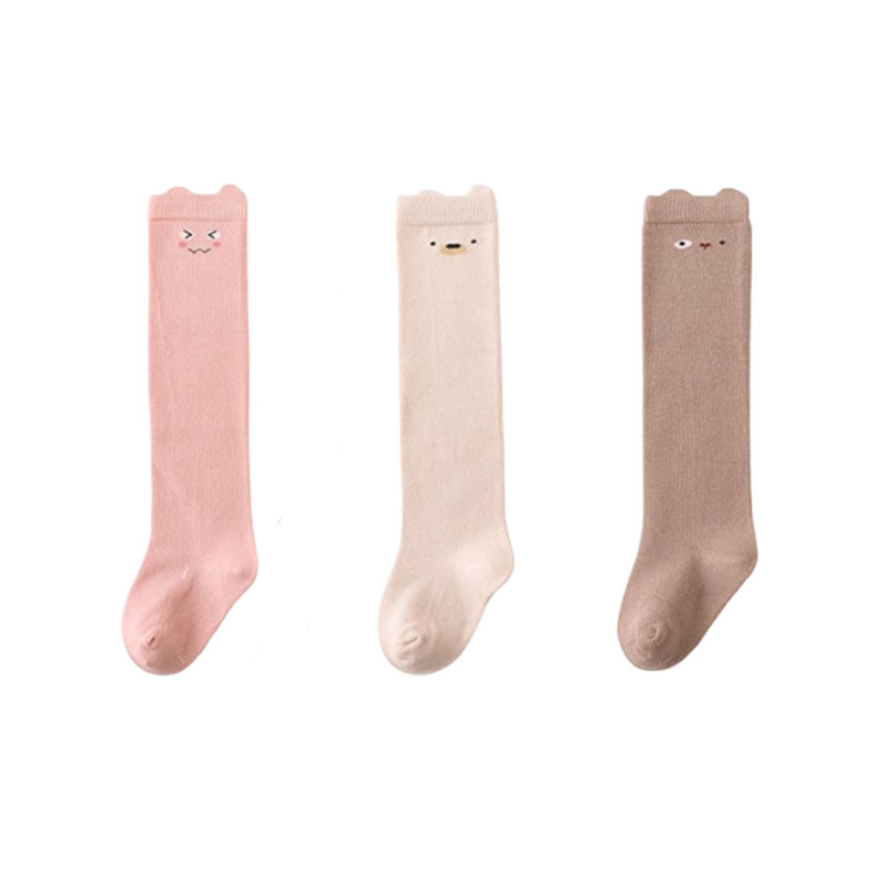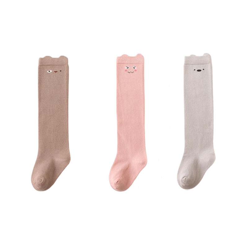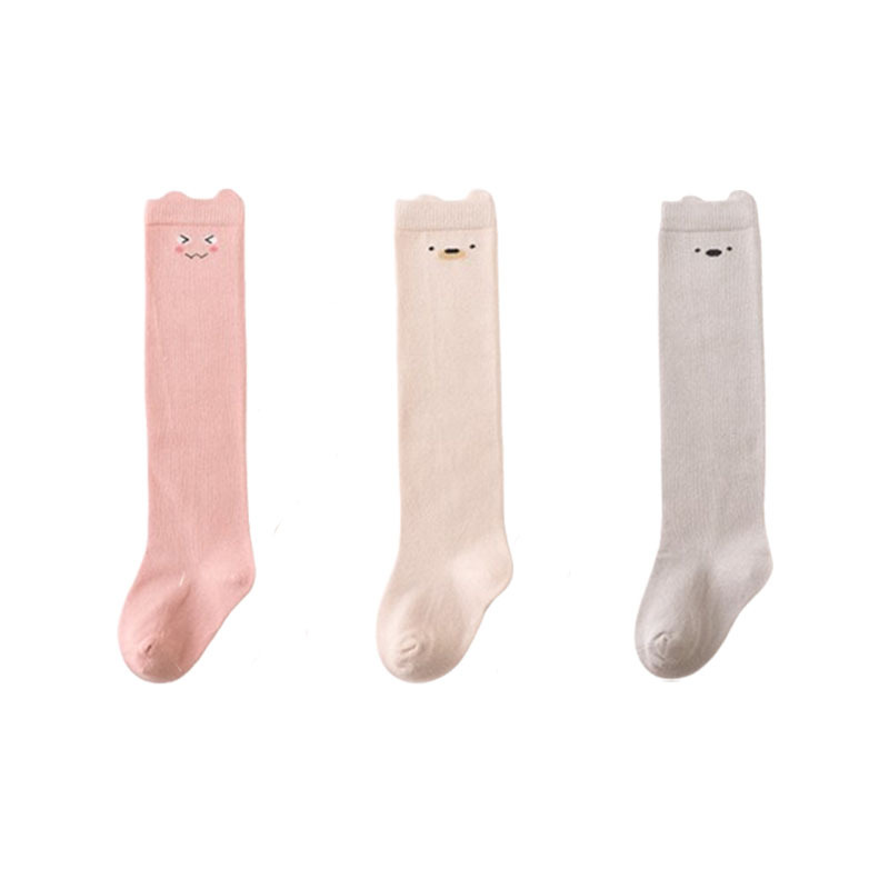 • 9011 봄과 가을 만화 긴 튜브 무릎 양말 핑크 베이지 그레이