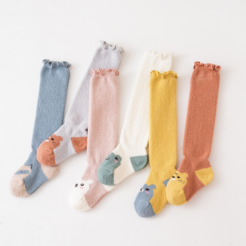 가을과 겨울 빗질면 아기 양말 긴 무릎 위 뼈없는 아기 양말 신생아 느슨한 따뜻한 어린이 양말
