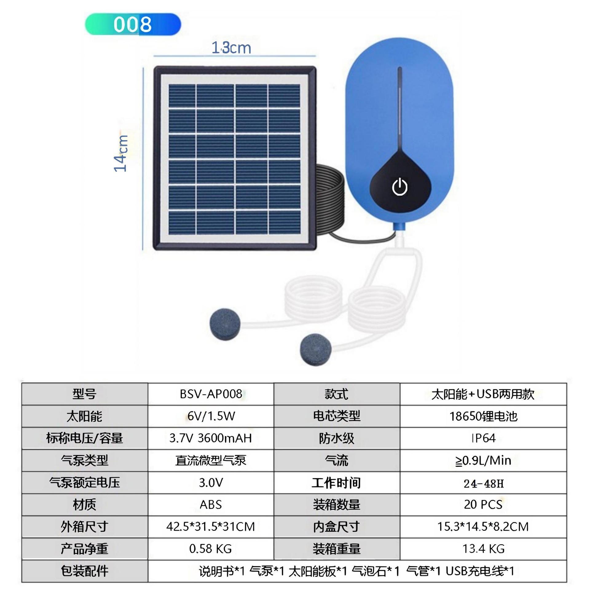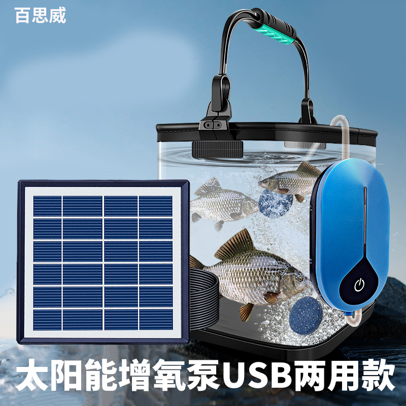 야외 낚시 태양열 USB 이중 목적 휴대용 산소 펌프 소형 수족관 물고기 연못 산소 공급 장치 국경 간 인기 판매스토어 가기