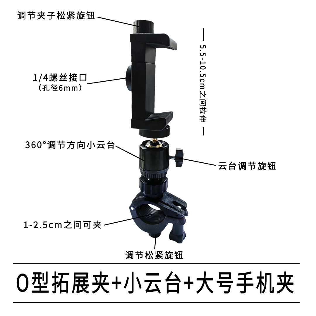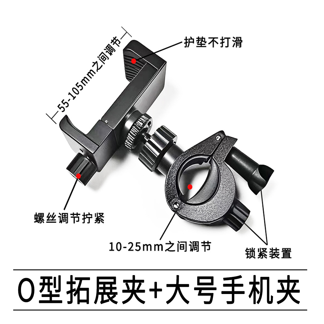 • 확장 클램프 + 곡선 스티어링 헤드 + 단일 풀 휴대 전화 클램프