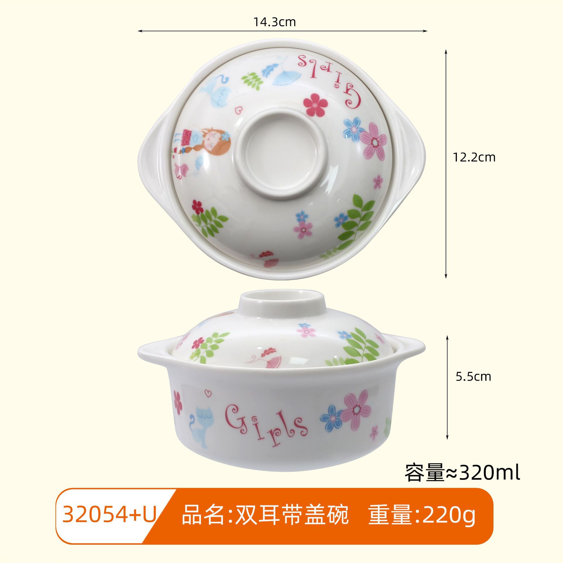 • 32054 U 더블 귀 밴드 커버 그릇-고양이와 소녀