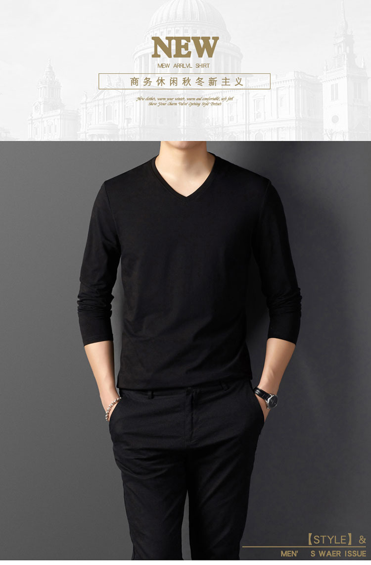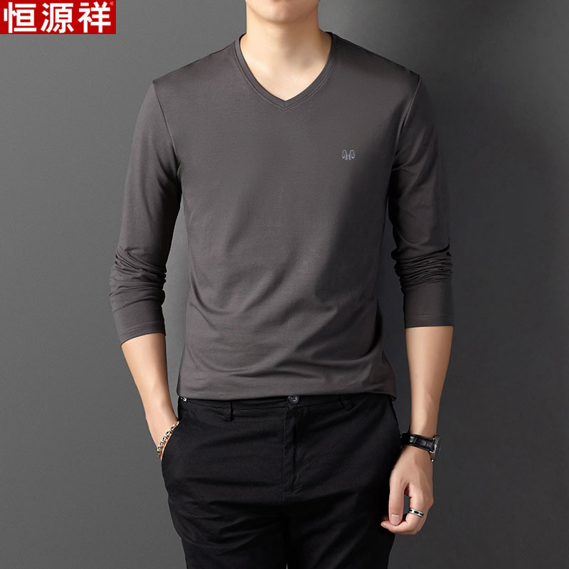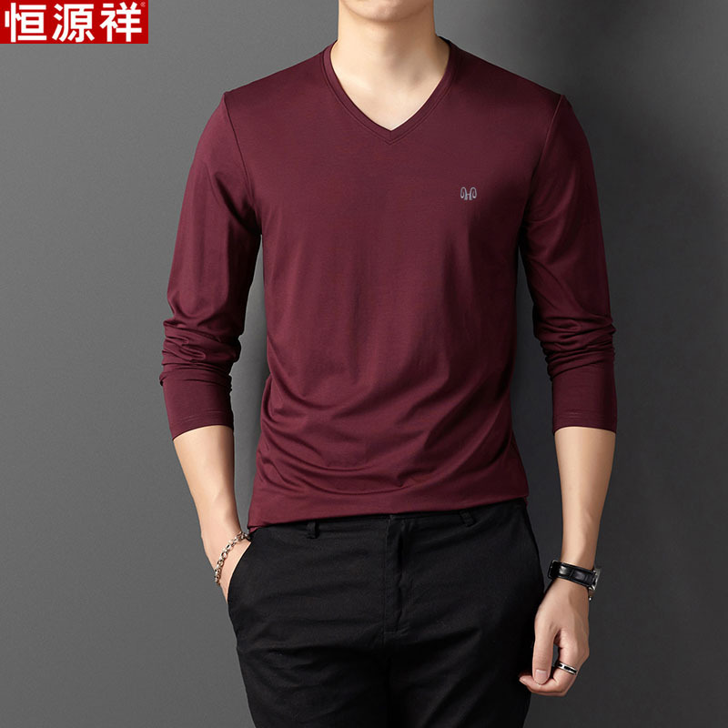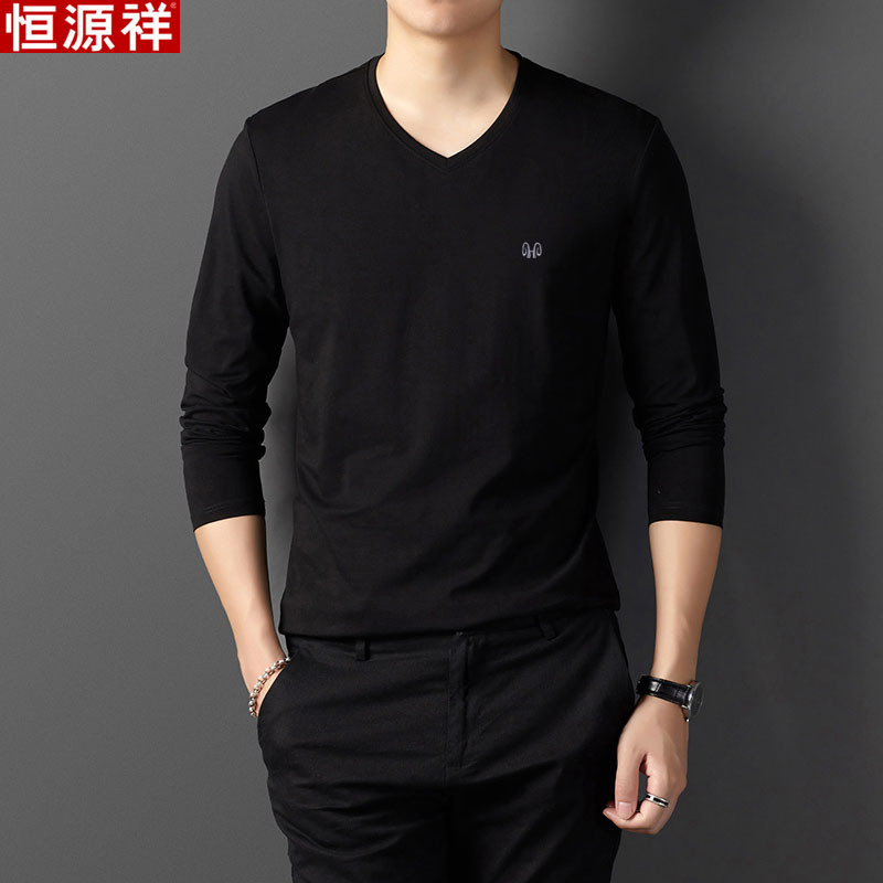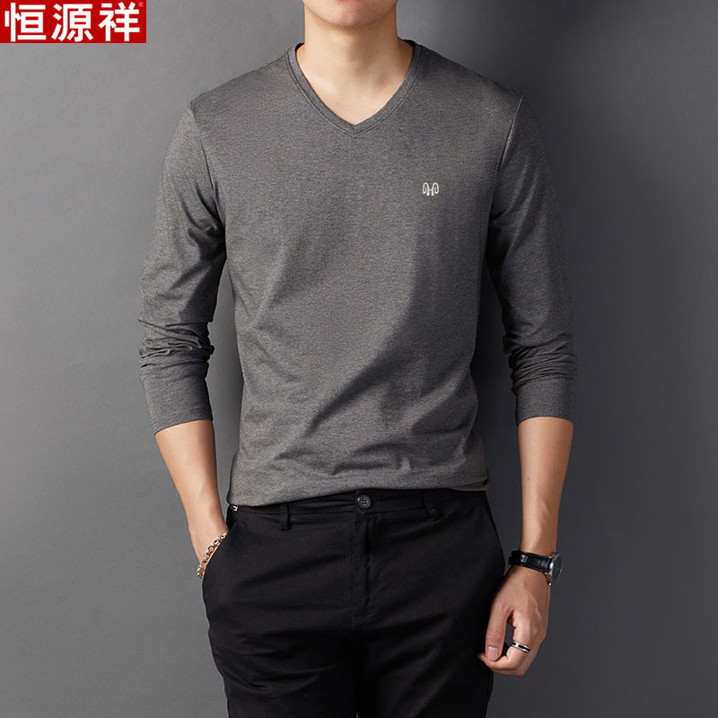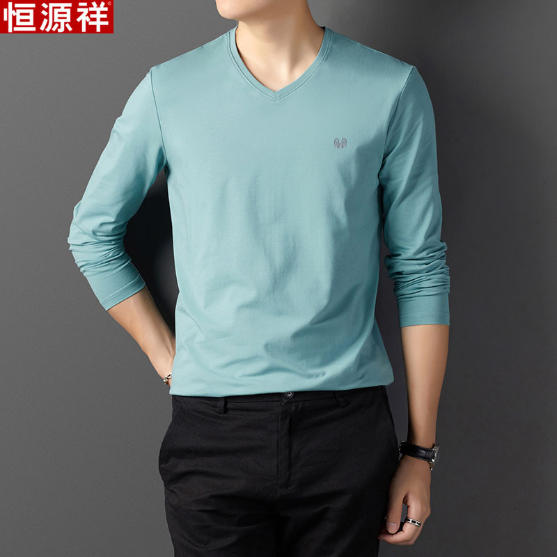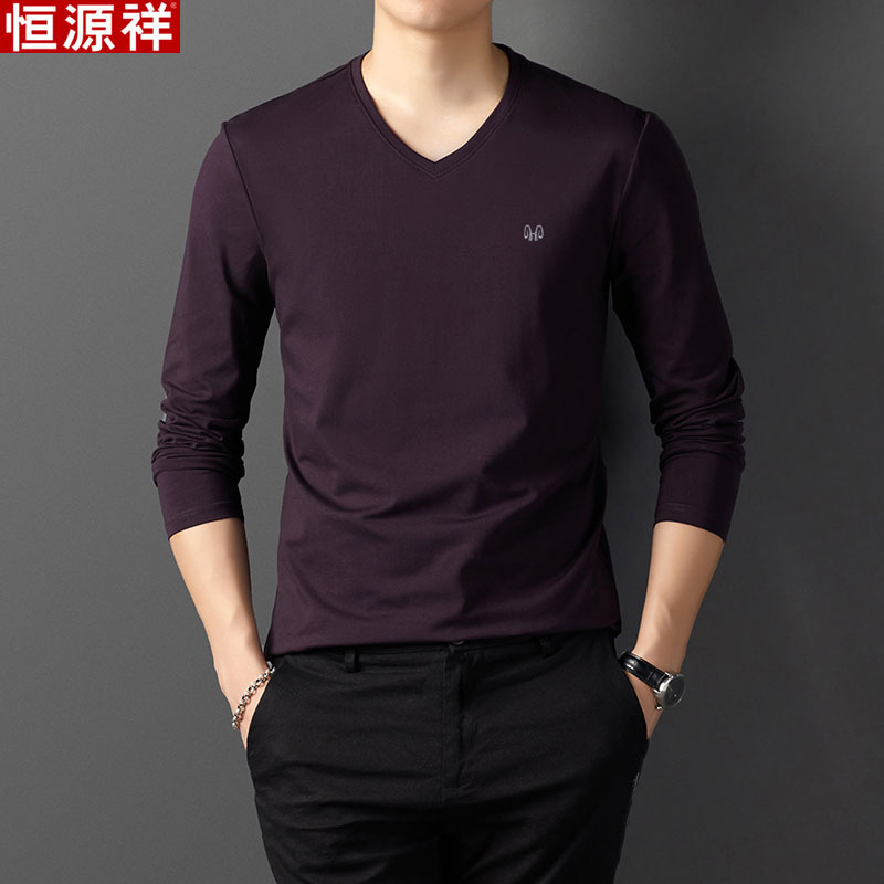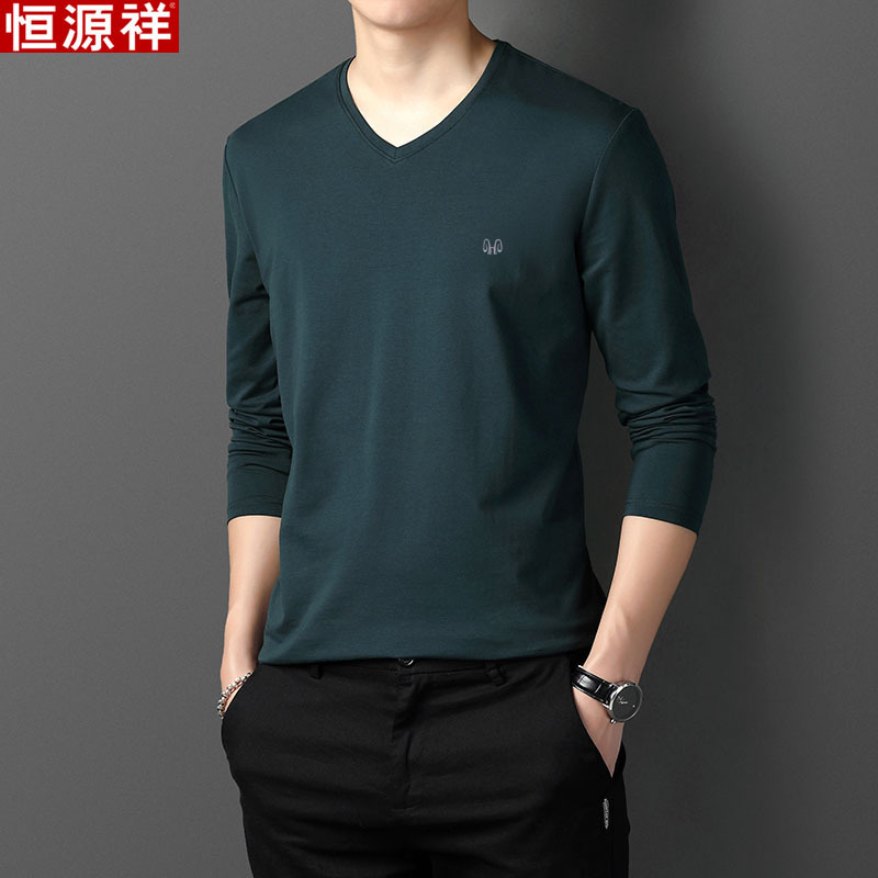 Hengyuanxiang 긴팔 티셔츠 남성용 V넥 티셔츠 겨울 순면 중년 남성 아빠 탑 가을 베이스 셔츠스토어 가기