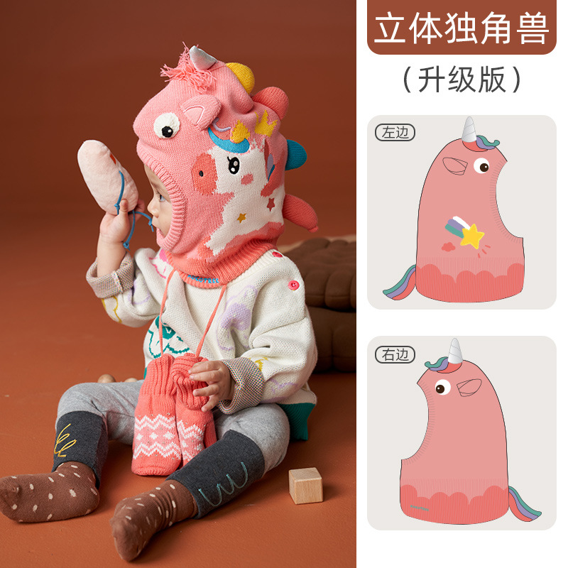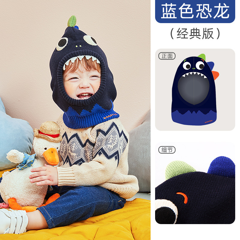 KK 트리 어린이 모자 가을과 겨울 소년의 공룡 스카프 올인원 모자 니트 스카프 아기의 겨울 소년의 울 모자스토어 가기