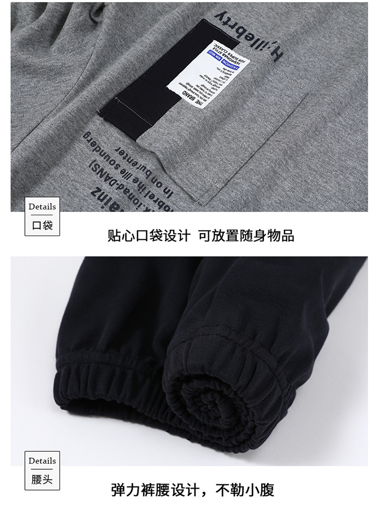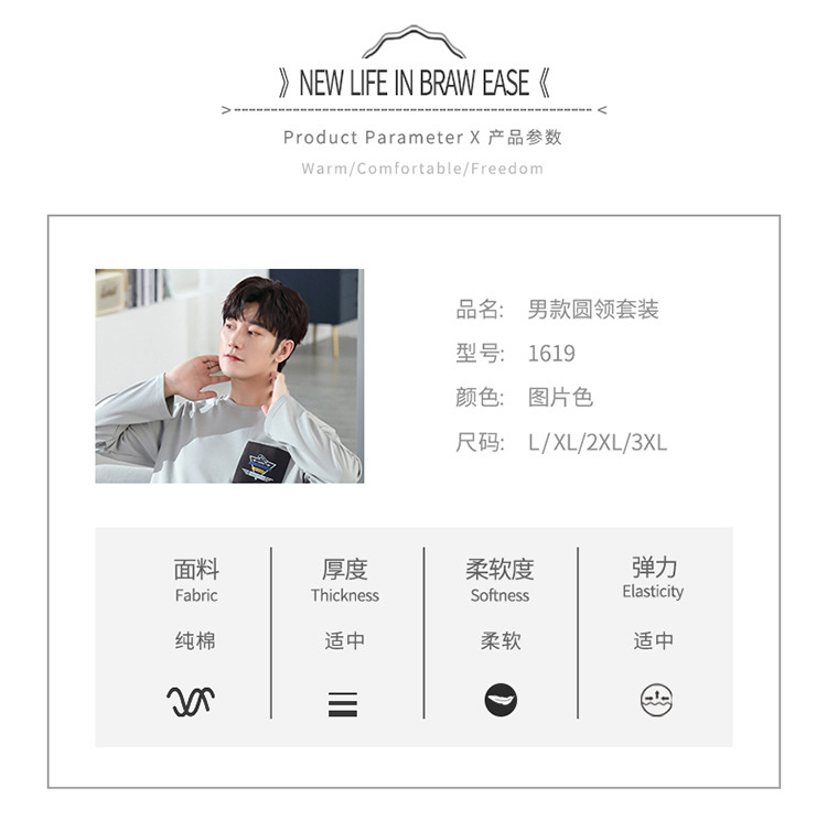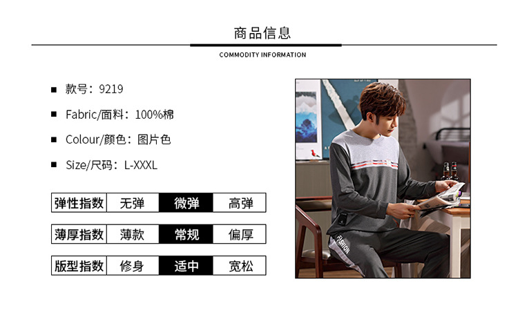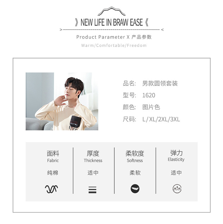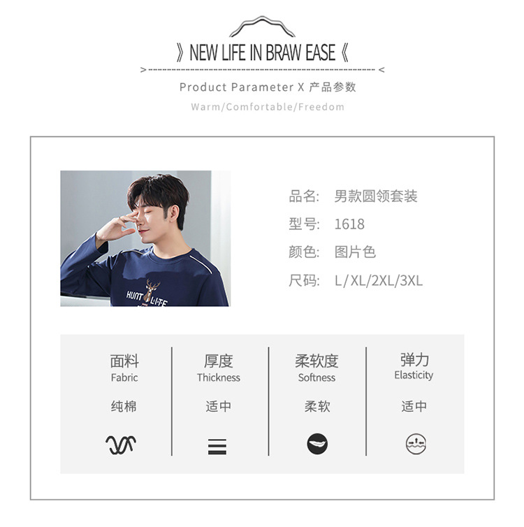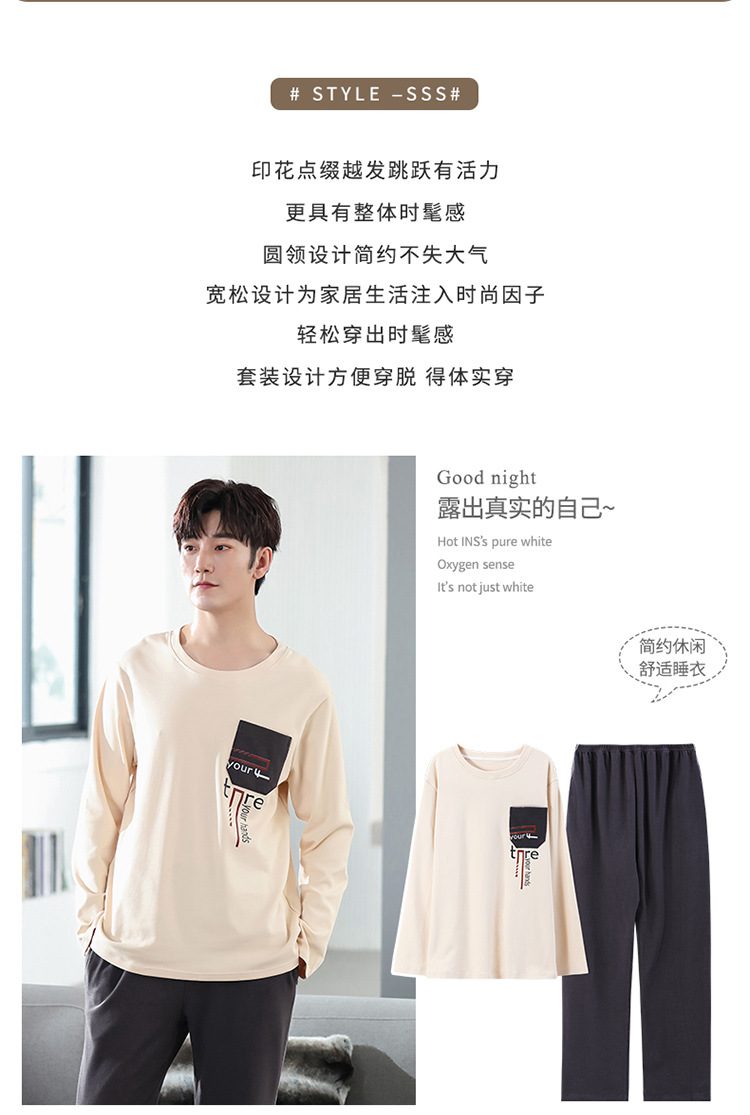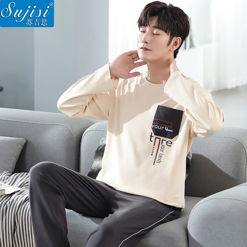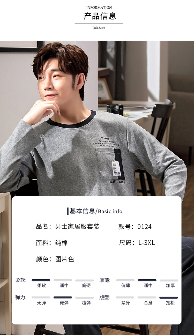 남자의 순면 잠옷 봄과 가을 한국 스타일 유행 간단한 라운드 넥 풀오버 플러스 사이즈 귀여운 가정 의류 남자의 세트스토어 가기