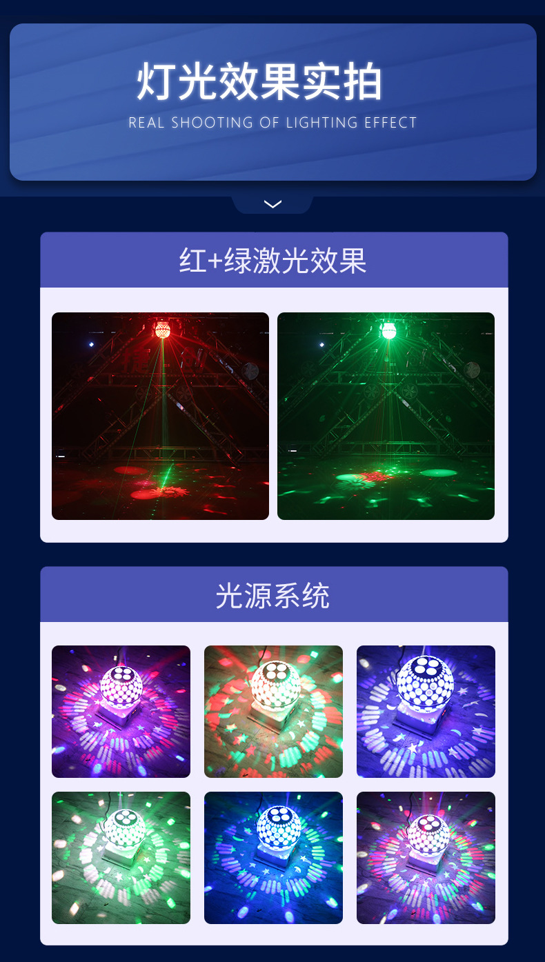무대 LED 매직 볼 라이트 음성 제어 회전 분위기 조명 바 KTV 라이트 쇼 다채로운 패턴 랜턴 플래시 라이트
