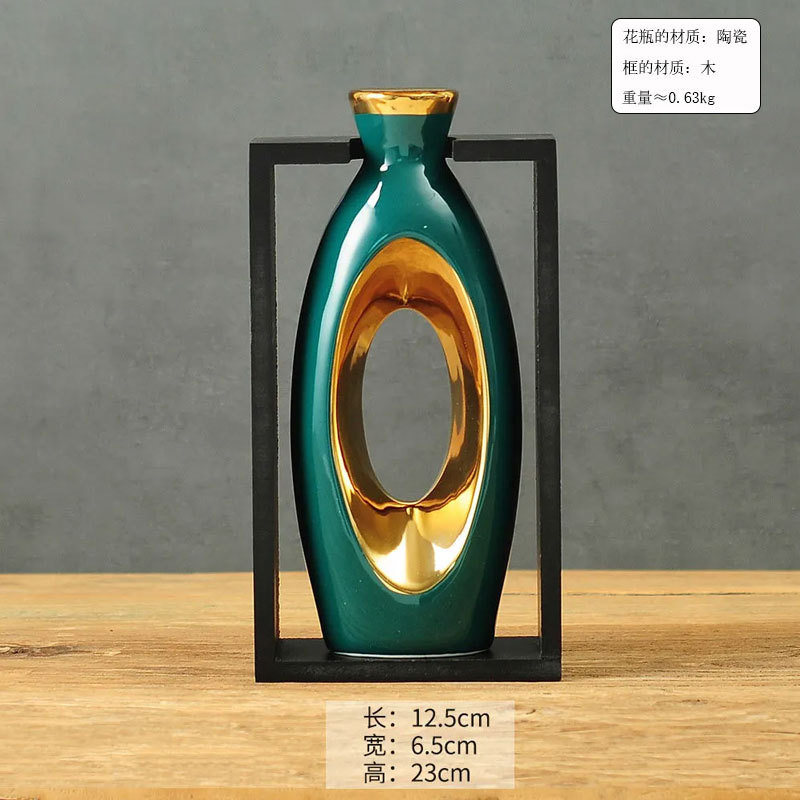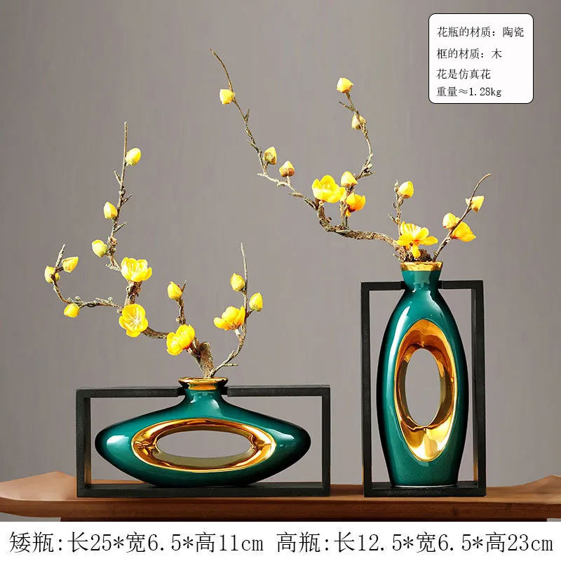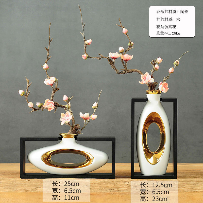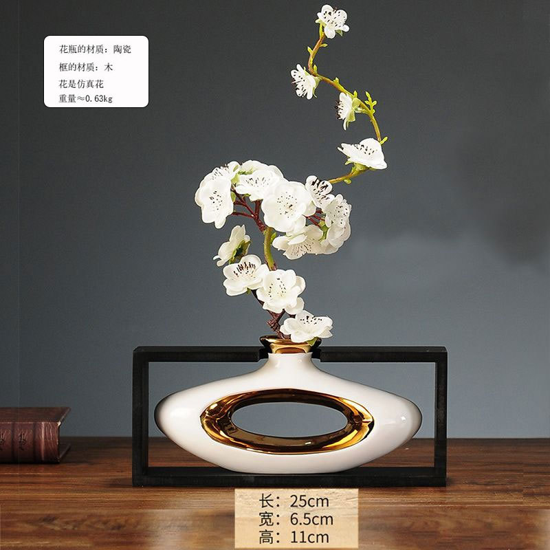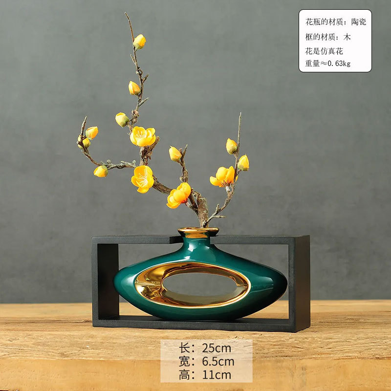 공장 직판 새로운 중국 꽃병 나무 프레임 매화 꽃 도자기 공예 거실 가정 장식 회사 비즈니스 선물스토어 가기