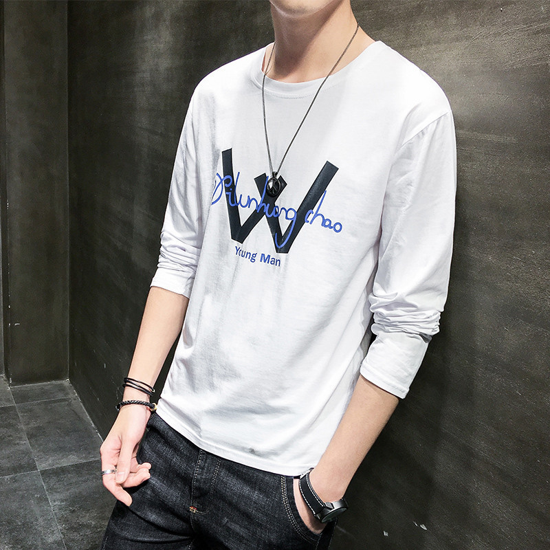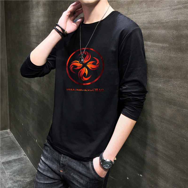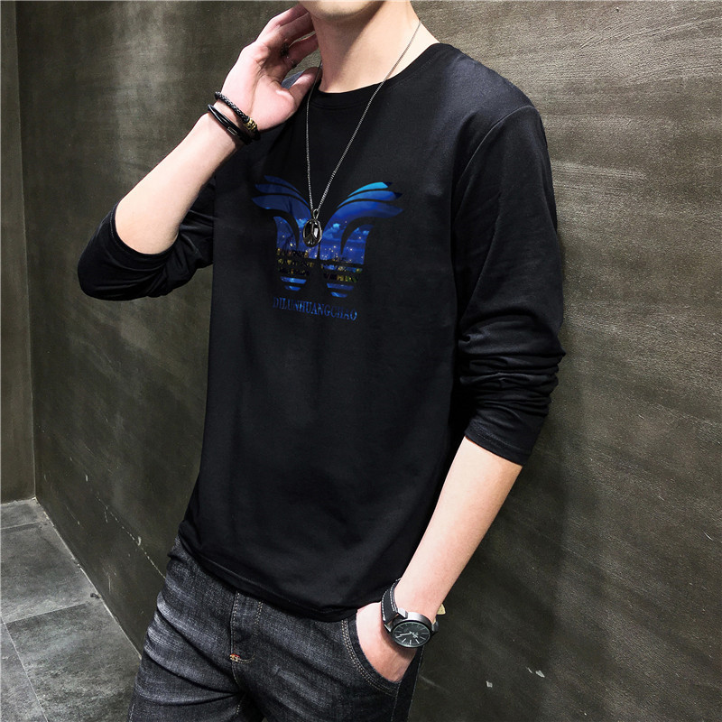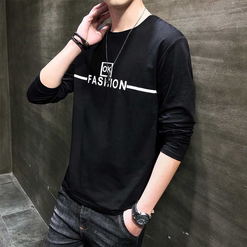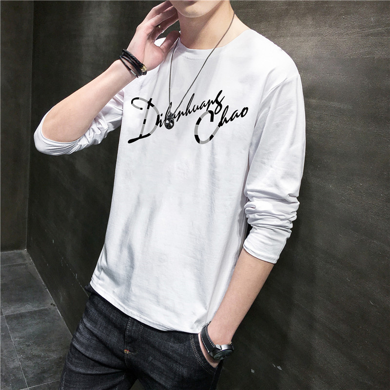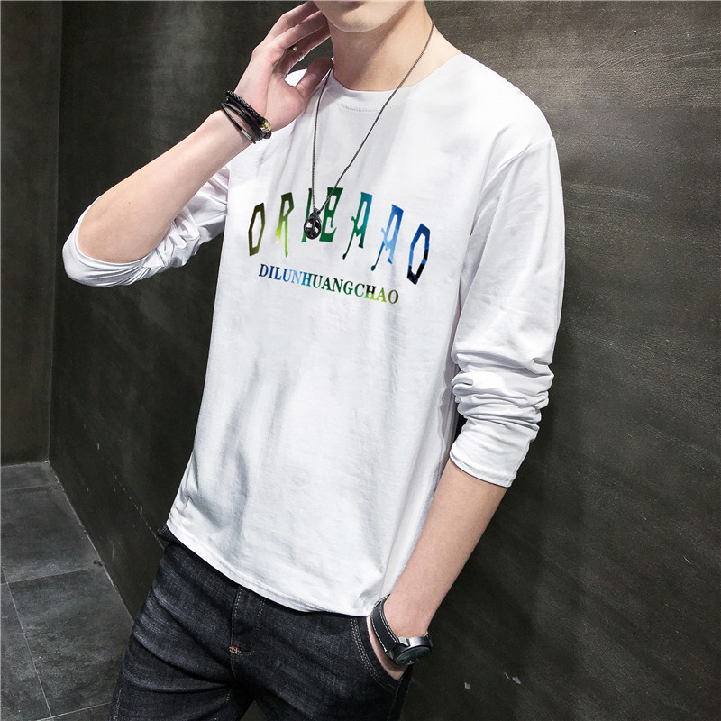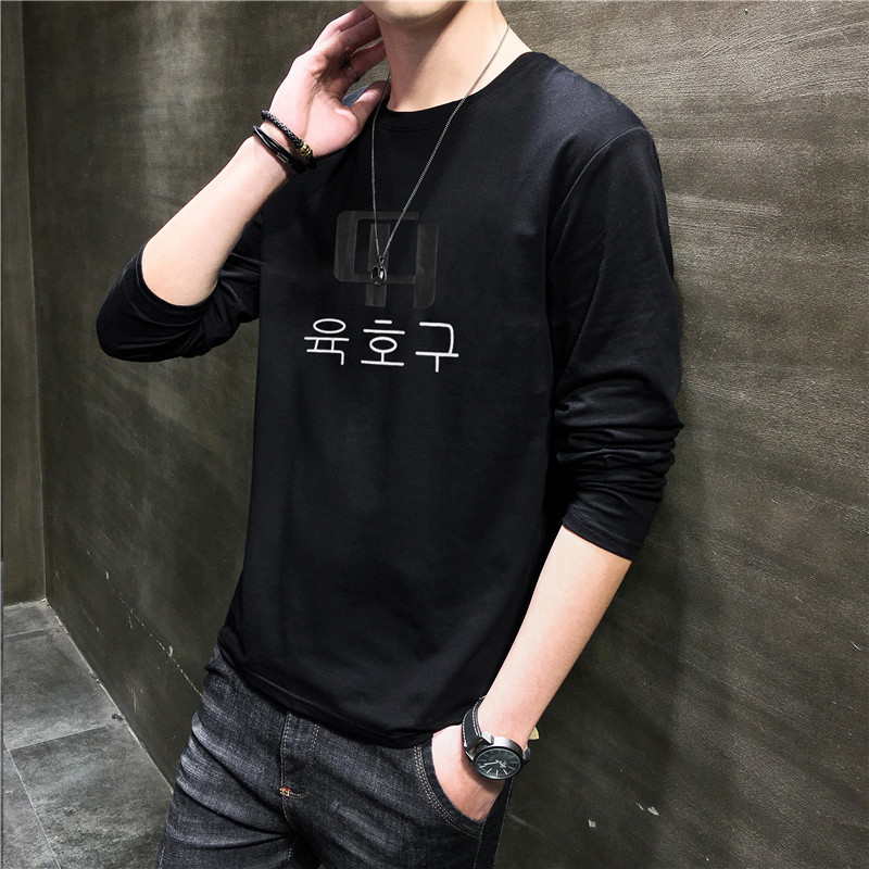 긴 소매 티셔츠 남성용 라운드 넥 봄과 가을 새 티셔츠 탑 의류 한국 유행 남성용 이너베이스 셔츠 가을 옷스토어 가기