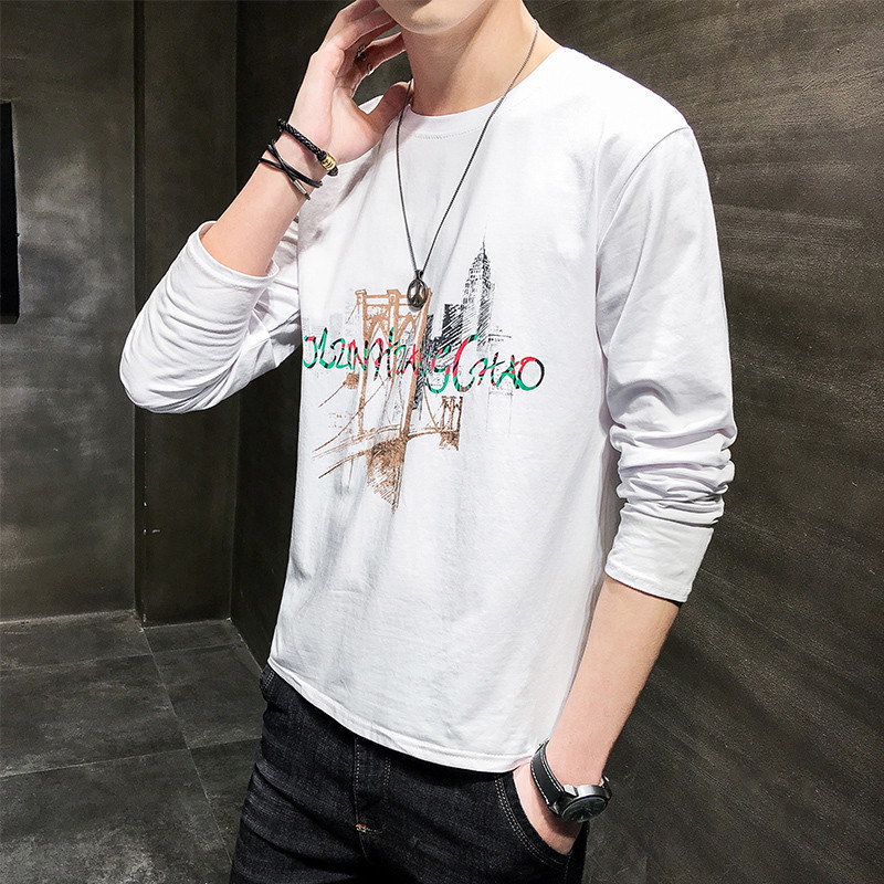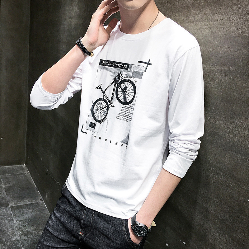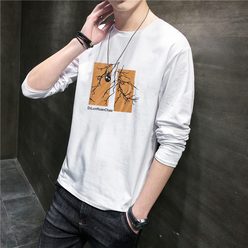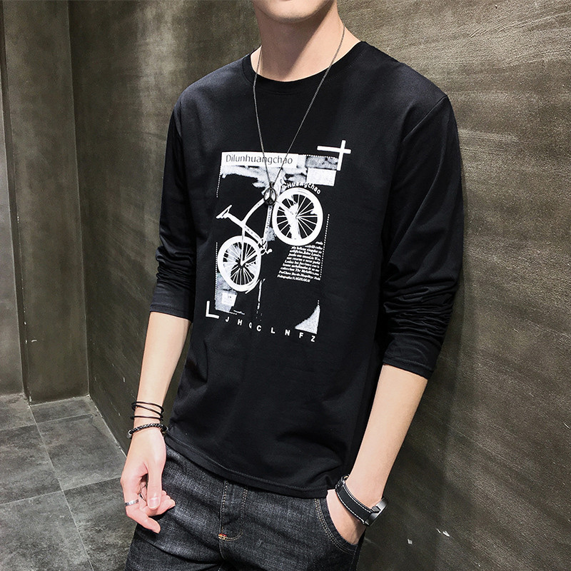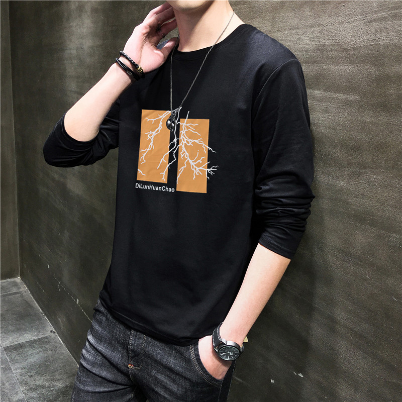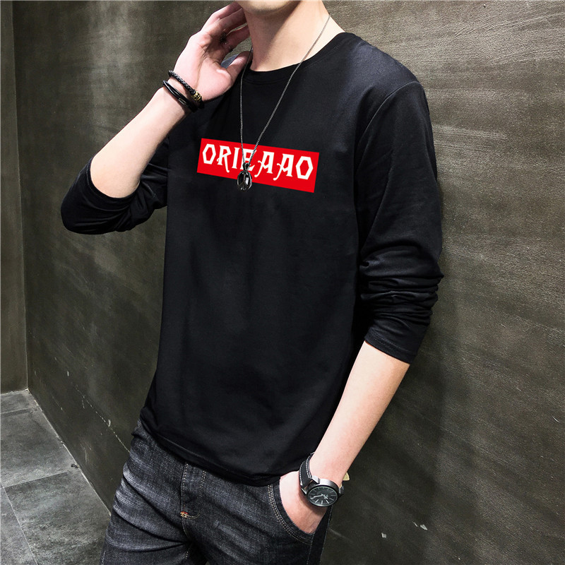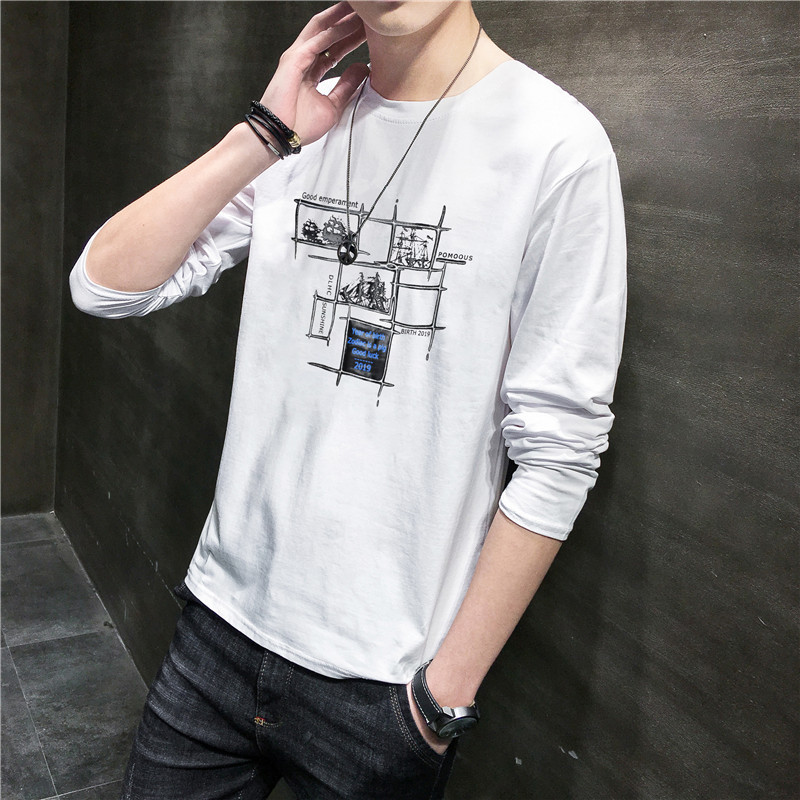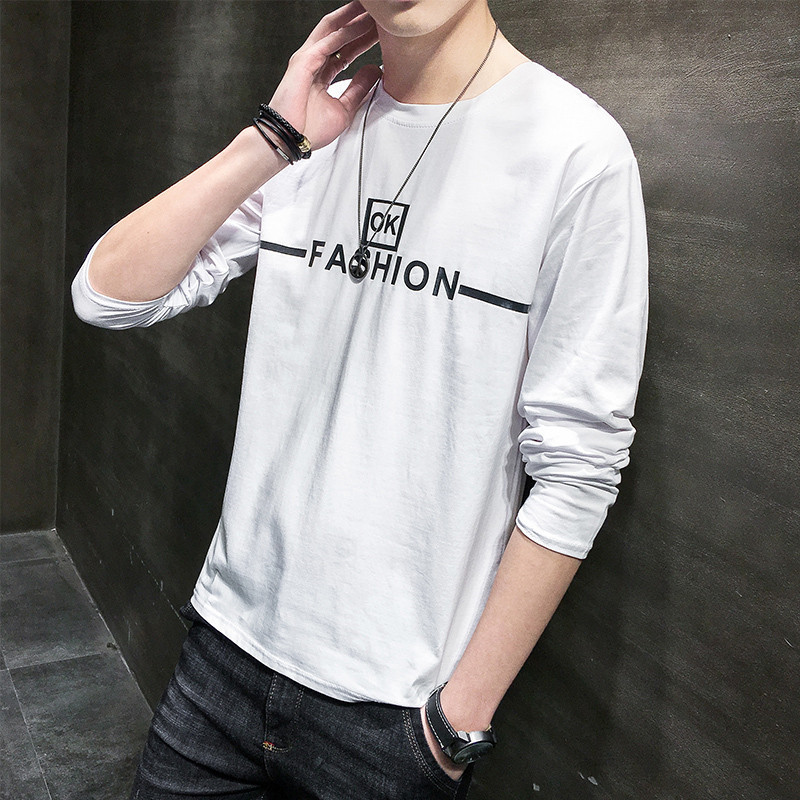 긴 소매 티셔츠 남성용 라운드 넥 봄과 가을 새 티셔츠 탑 의류 한국 유행 남성용 이너베이스 셔츠 가을 옷스토어 가기