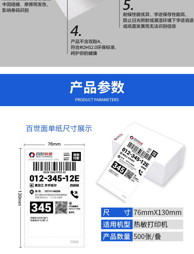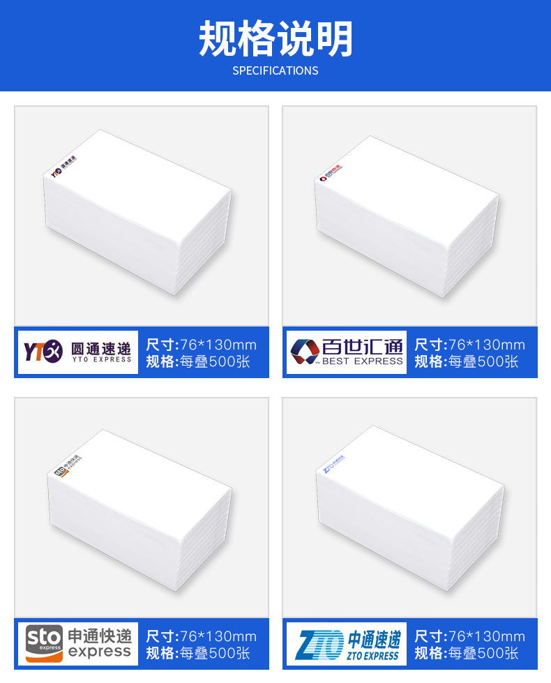 76*130mm/ 500张 4叠一箱