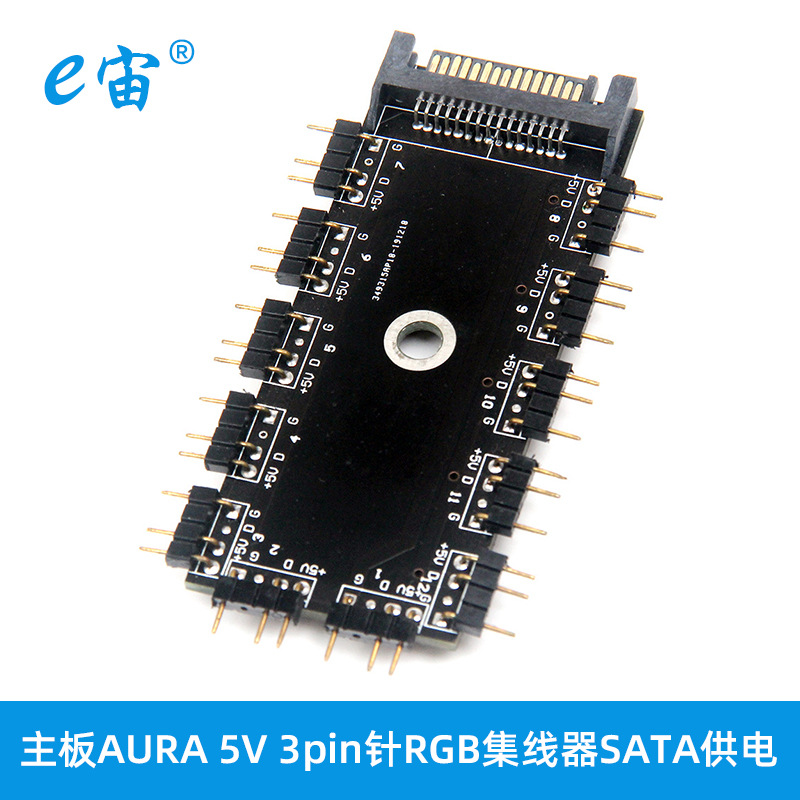主板AURA 5V 3pin针RGB接口同步 RGB集线器RGB HUB SATA供电1拖11