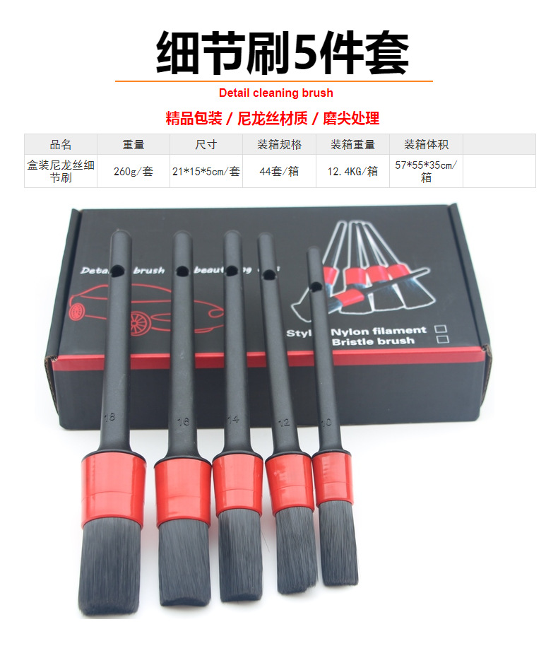 자동차 미용 세차 디테일링 브러쉬 5종 세트 pp 와이어 브러쉬 박스형 돼지털 나일론 연마 와이어 브러쉬 국경 간 전용스토어 가기