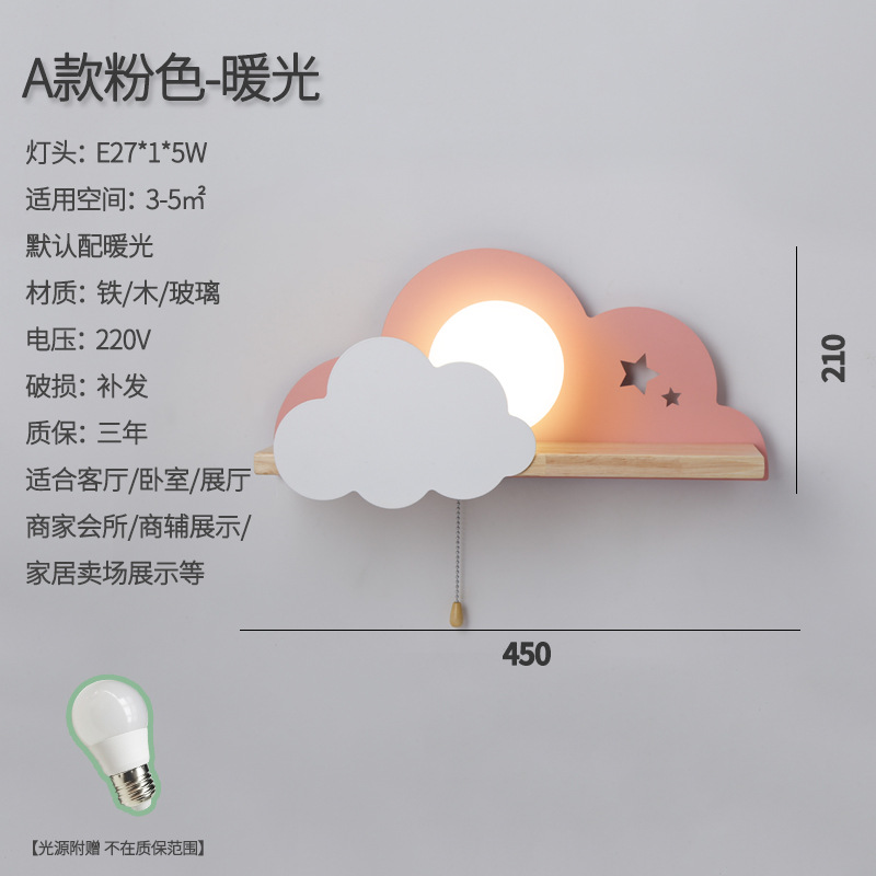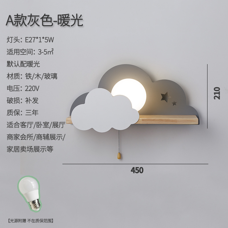 북유럽 벽 램프 어린이 방 선반 크리 에이 티브 맞춤형 소녀 방 구름 침실 머리맡 램프 led 눈 보호
