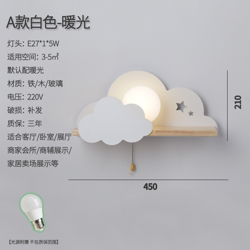 북유럽 벽 램프 어린이 방 선반 크리 에이 티브 맞춤형 소녀 방 구름 침실 머리맡 램프 led 눈 보호스토어 가기