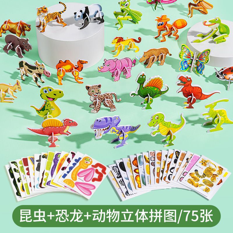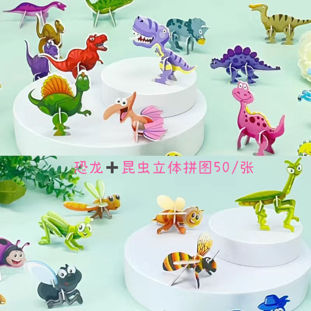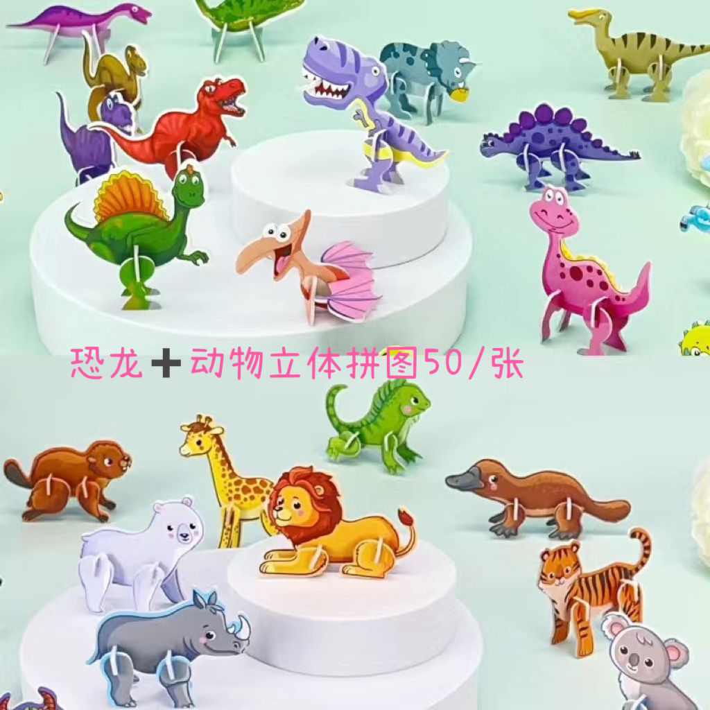 만화 3d 입체 퍼즐 유치원 수제 퍼즐 DIY 공룡 동물 세계 모델 어린이 장난감 상스토어 가기
