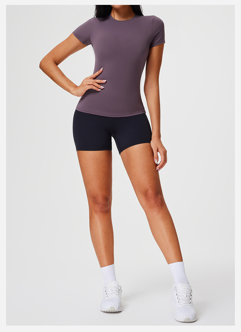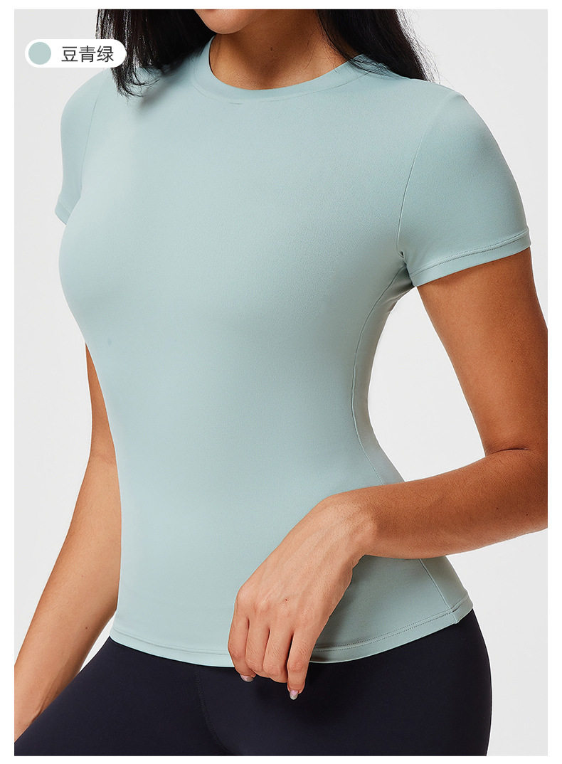 스포츠 티셔츠 여성 요가 착용 반팔 탄성 빠른 건조 허리 피트니스 슬림 러닝 피트니스 봄 여름 스포츠 탑
