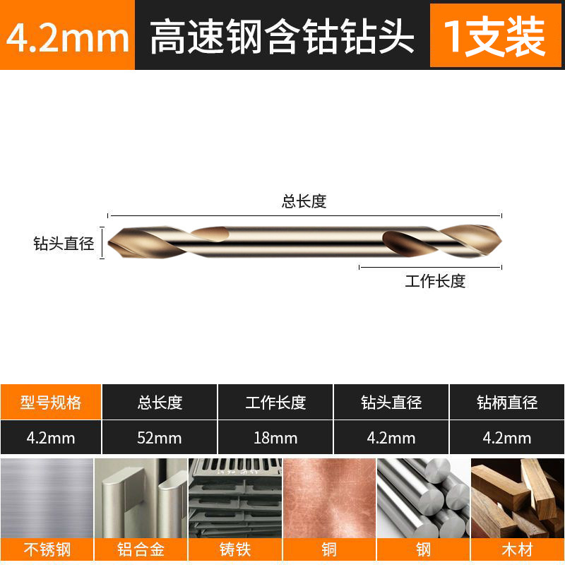 • 더블 헤드 트위스트 드릴 4.2*1 * M35 * 스트레이트 핸들 트위스트 드릴
