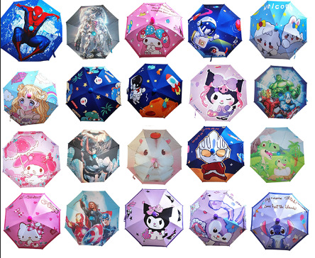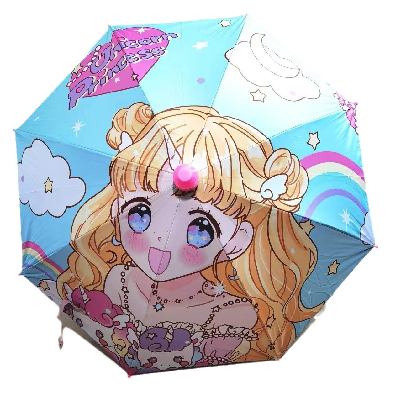 소녀와 소년 학생을위한 중형 비닐 어린이 우산 초경량 귀여운 공주 자동 핀치 방지 우산스토어 가기