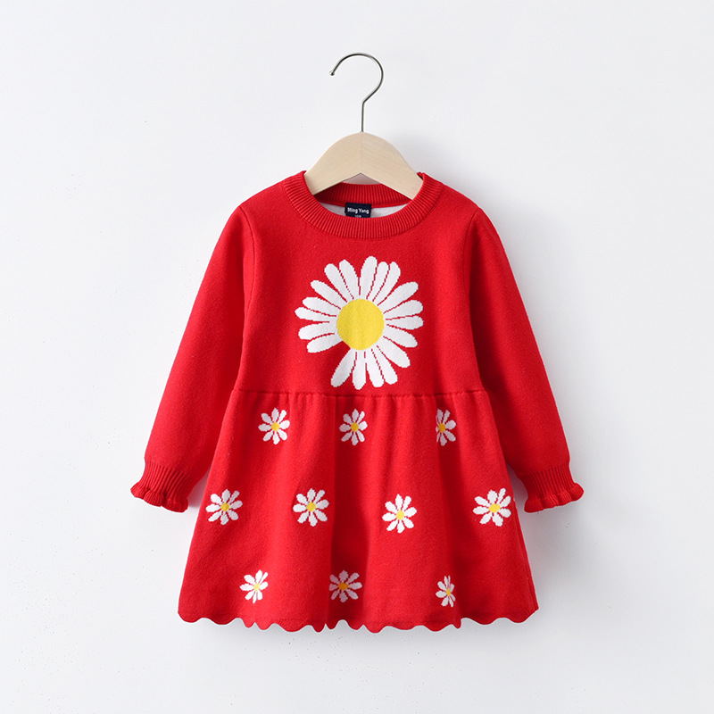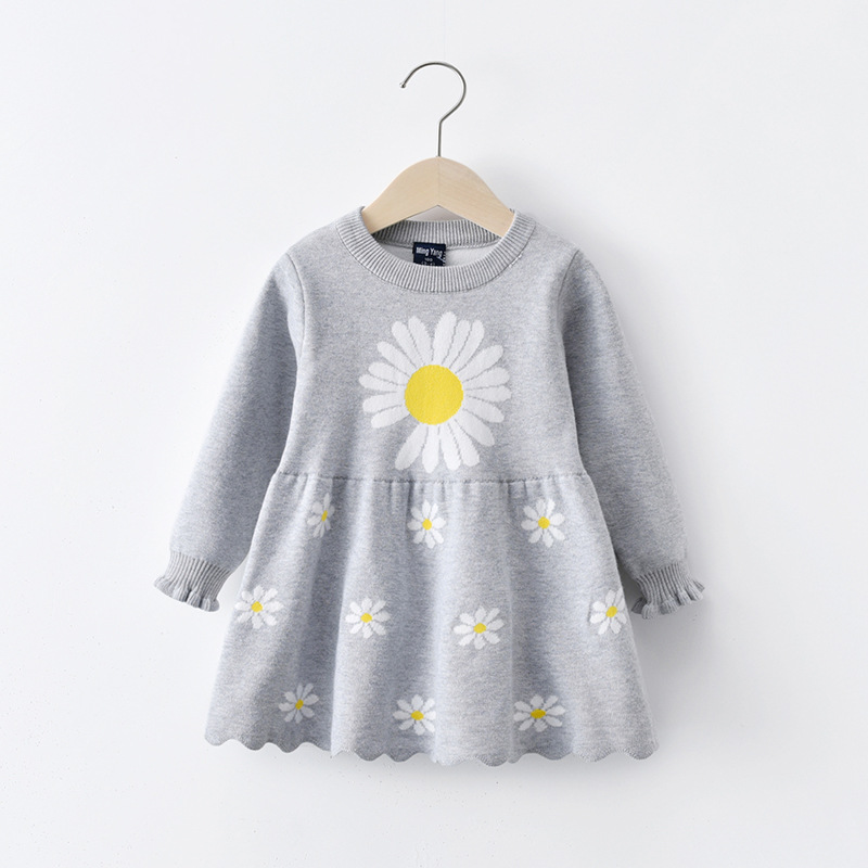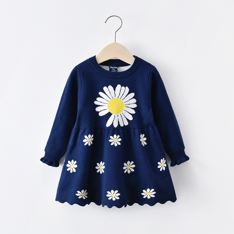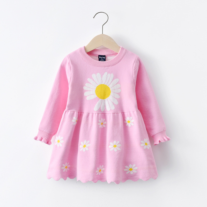 여아 드레스 가을 의류 2025 신상 데이지 스타일 니트 스웨터 드레스 가을 겨울 아동복 긴팔 공주 드레스