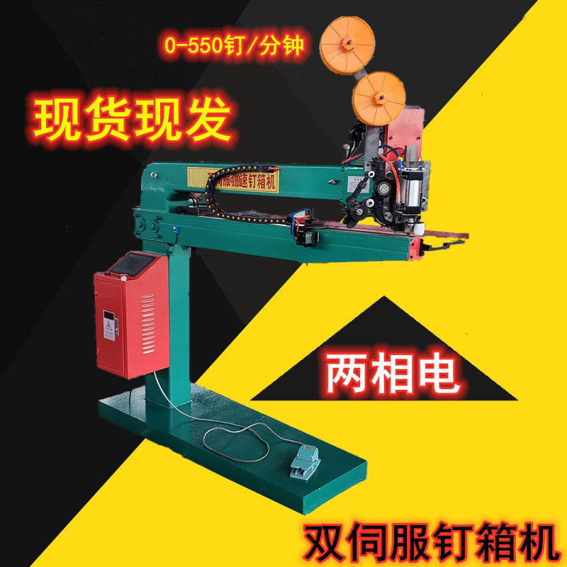 本机比普通钉箱机速度快一些的机器,两项电电源。速度0-550钉,双伺服速度快,触摸屏操作简单。