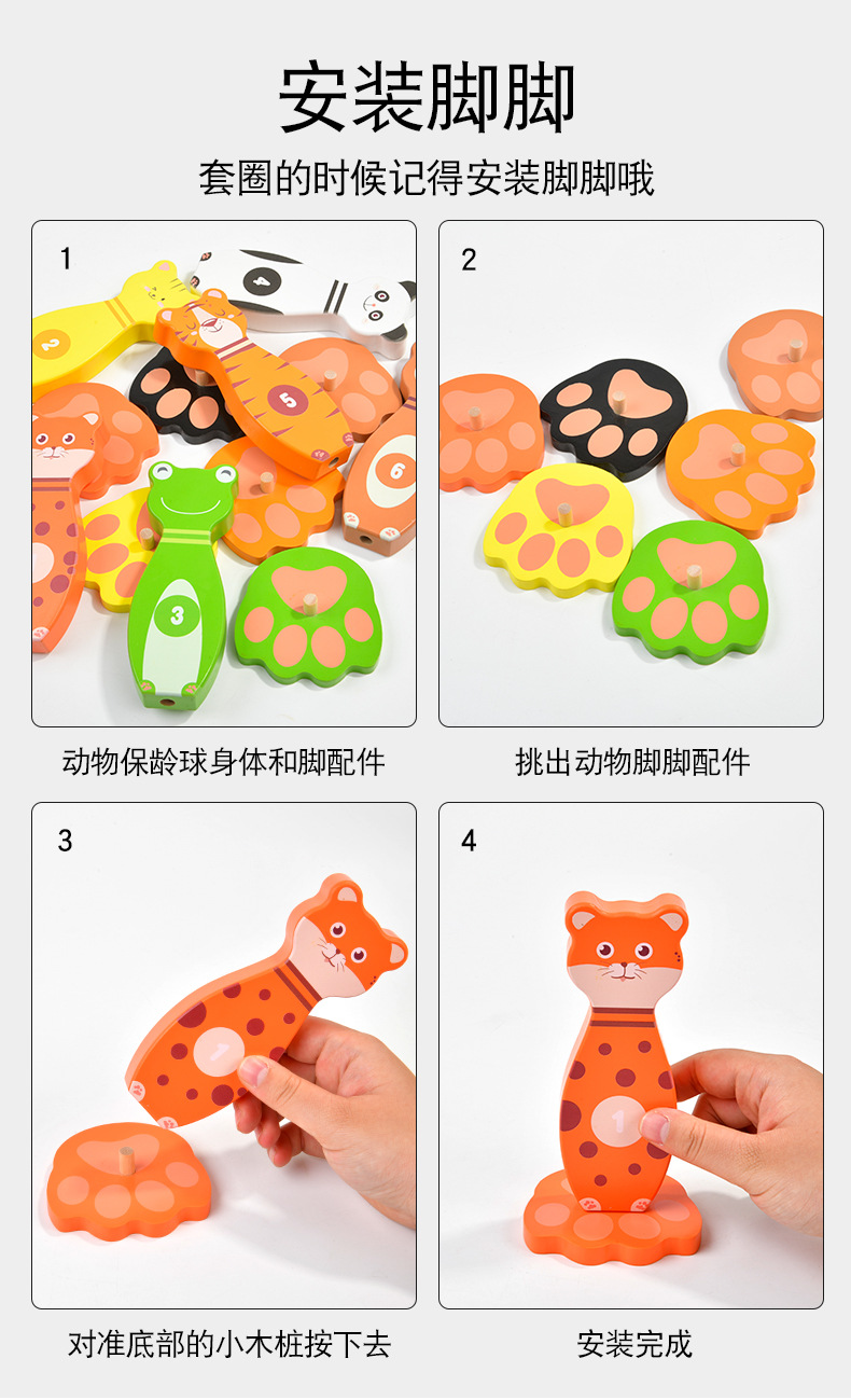 몬테소리 장난감 3-6 볼링 동물 루프 게임 어린이 퍼즐 손 눈 조정 칼라 장난감스토어 가기