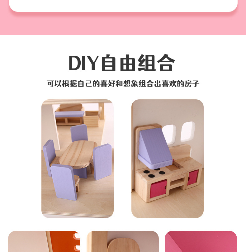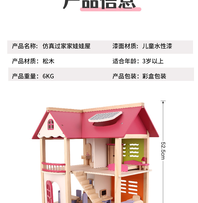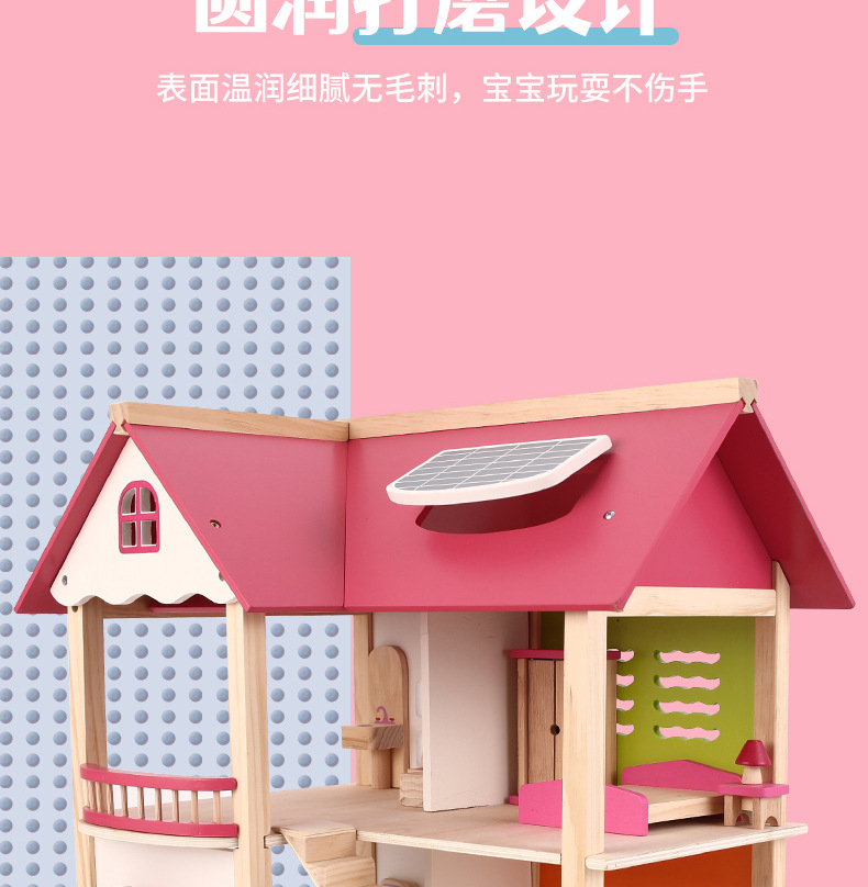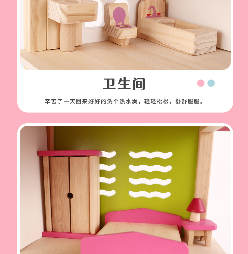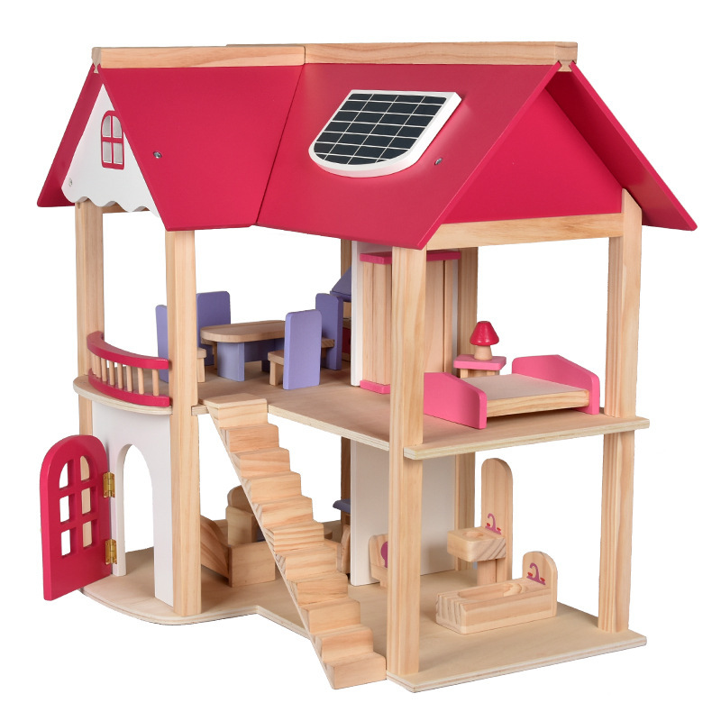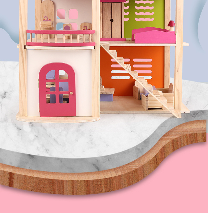 소녀 유아 수제 장난감 인형 집 3 세 나무 놀이 집 공주 성 핑크 방 인형 집