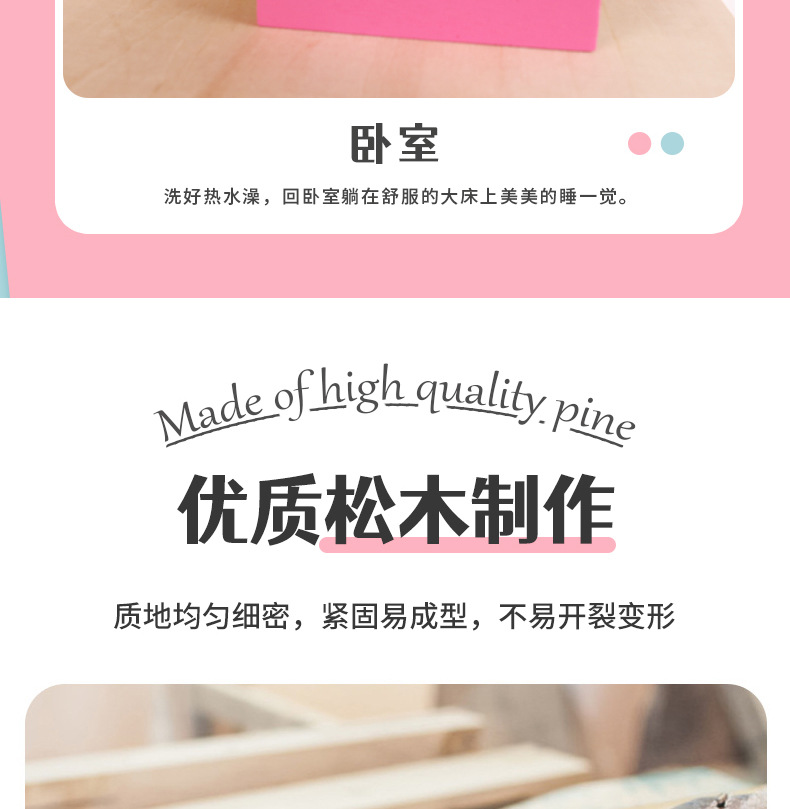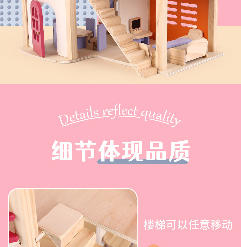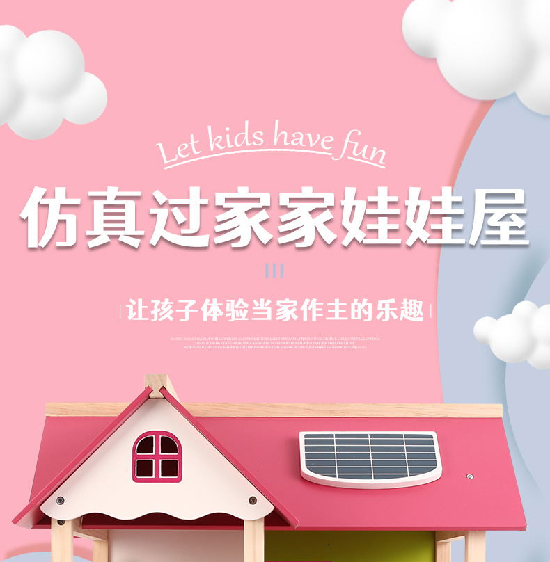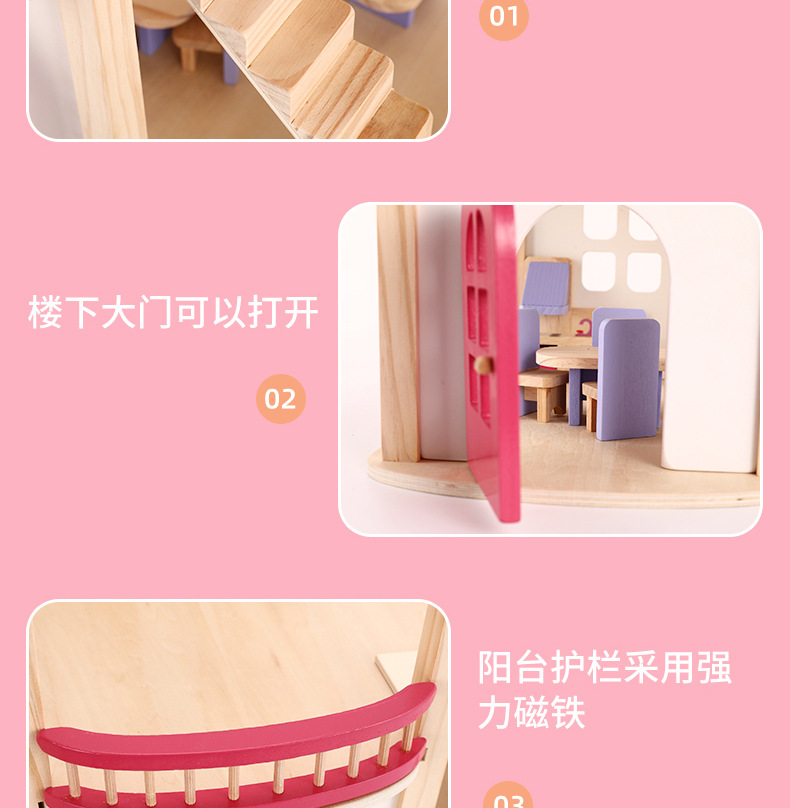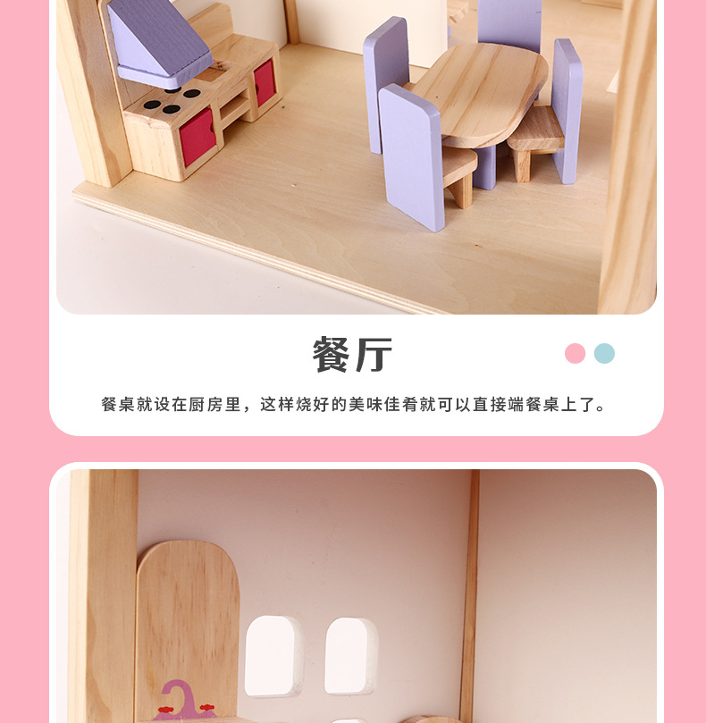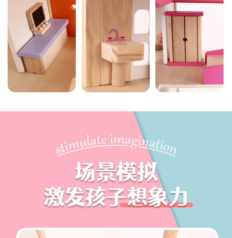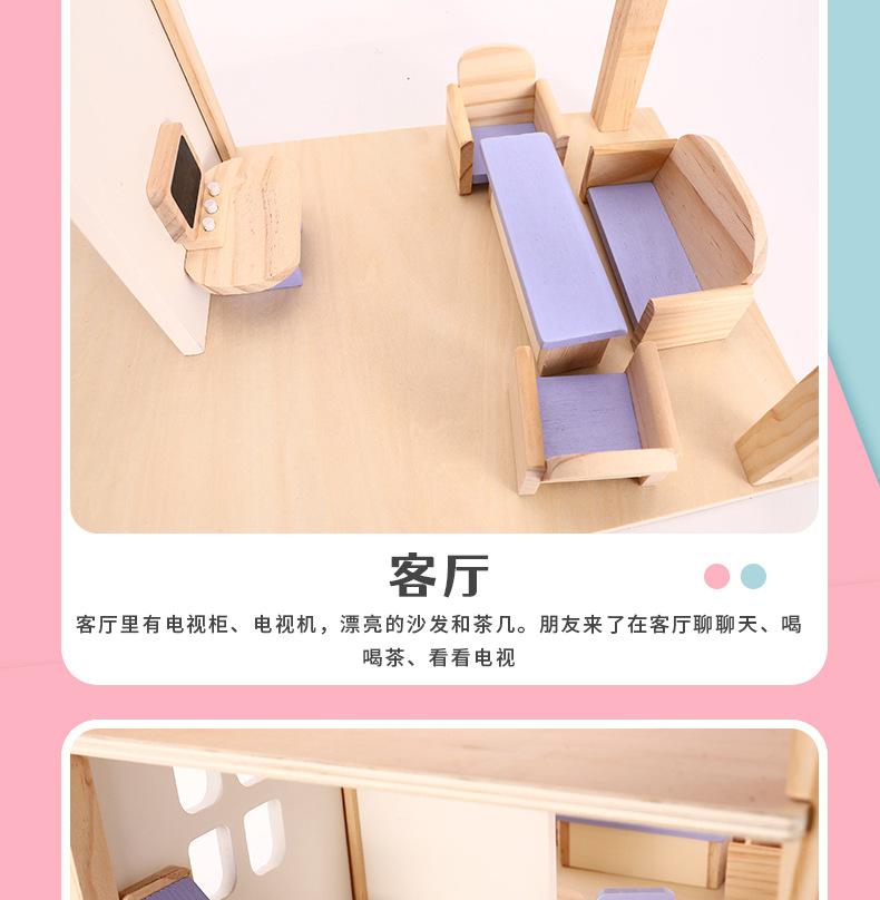 소녀 유아 수제 장난감 인형 집 3 세 나무 놀이 집 공주 성 핑크 방 인형 집