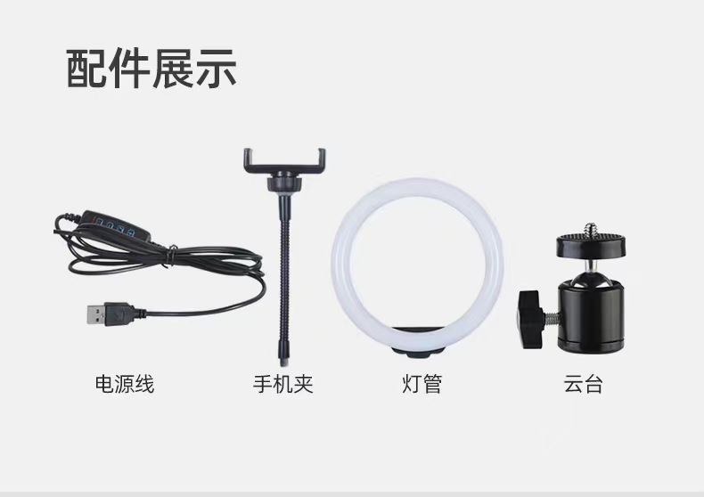 配置:补光灯+云台+手机夹子+包装盒
