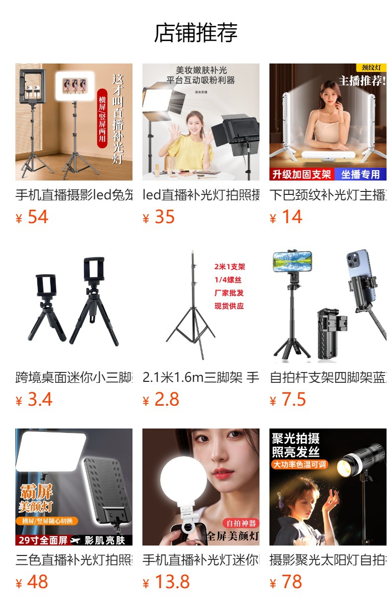 直播补光灯、灯光三色调节切换,有直播2米1/1米6三脚架、