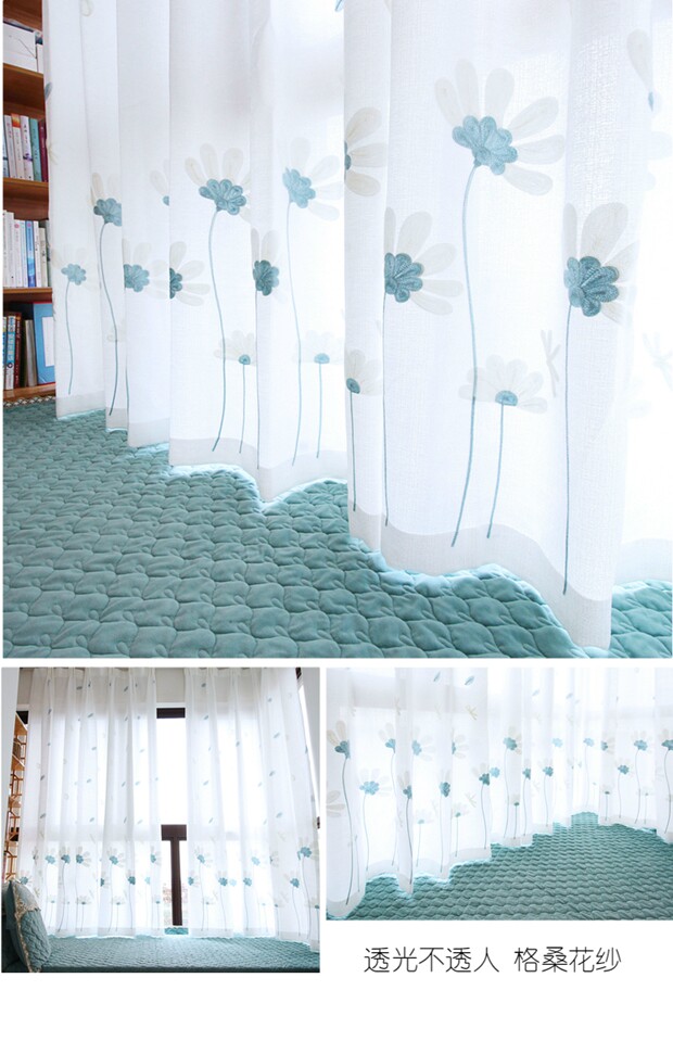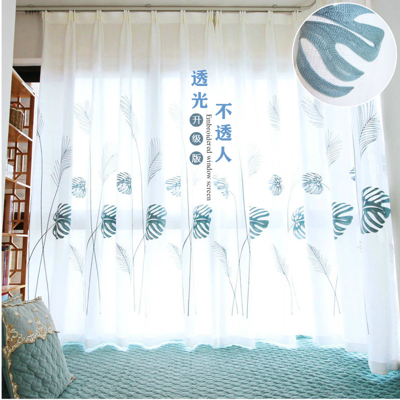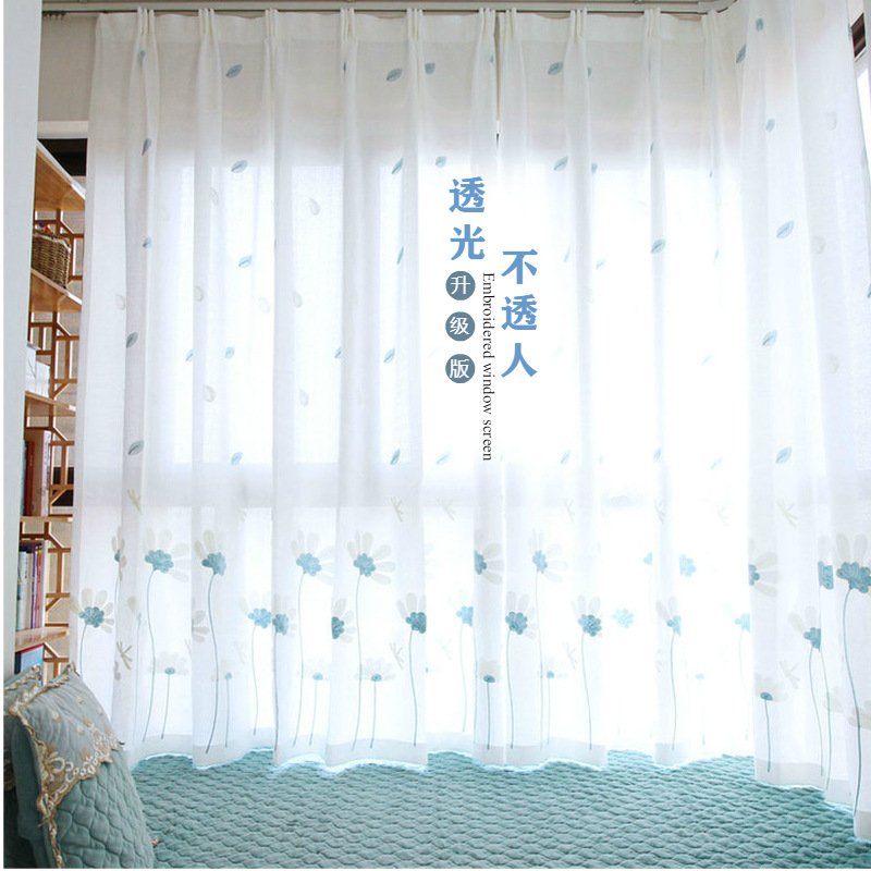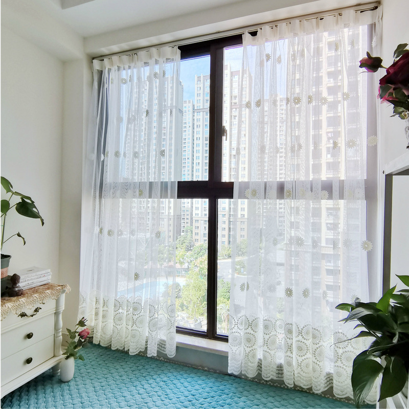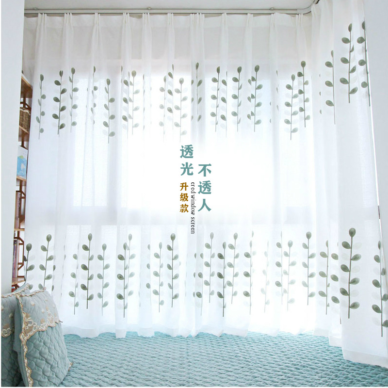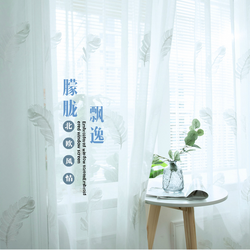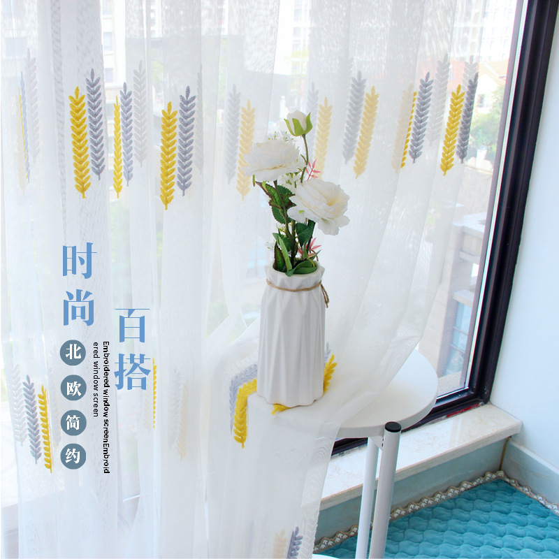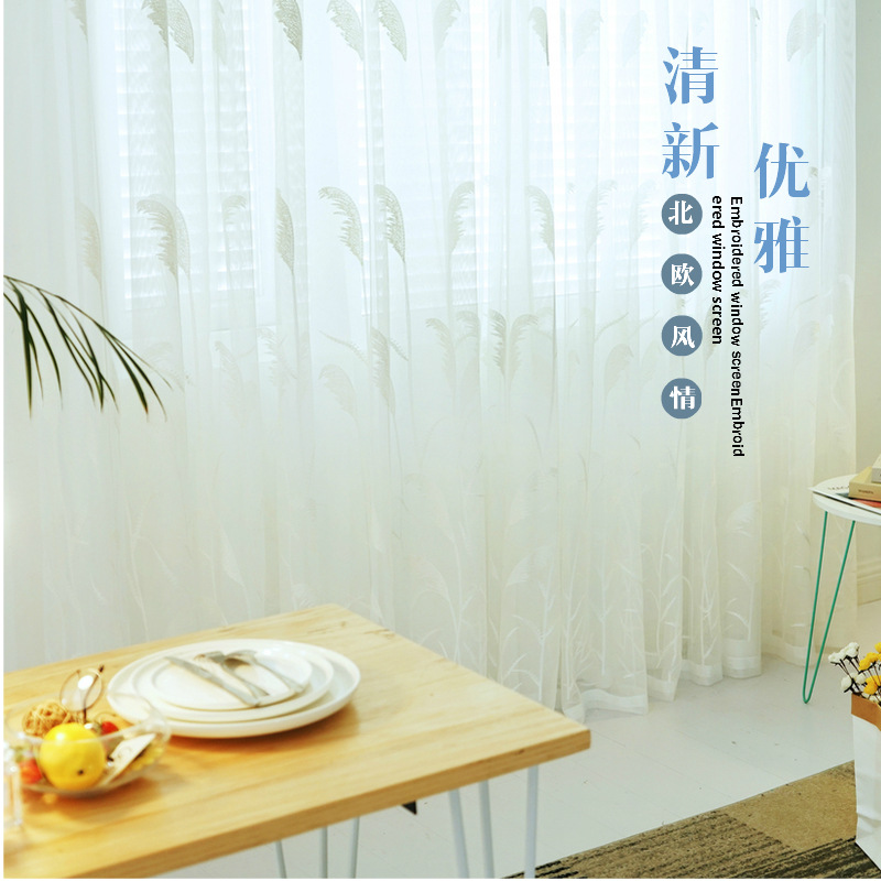 북유럽 현대 파티션 거즈 커튼 마감 수 놓은 창 화면 거실 침실 베이 창 커튼 단색 발코니 흰색 거즈스토어 가기