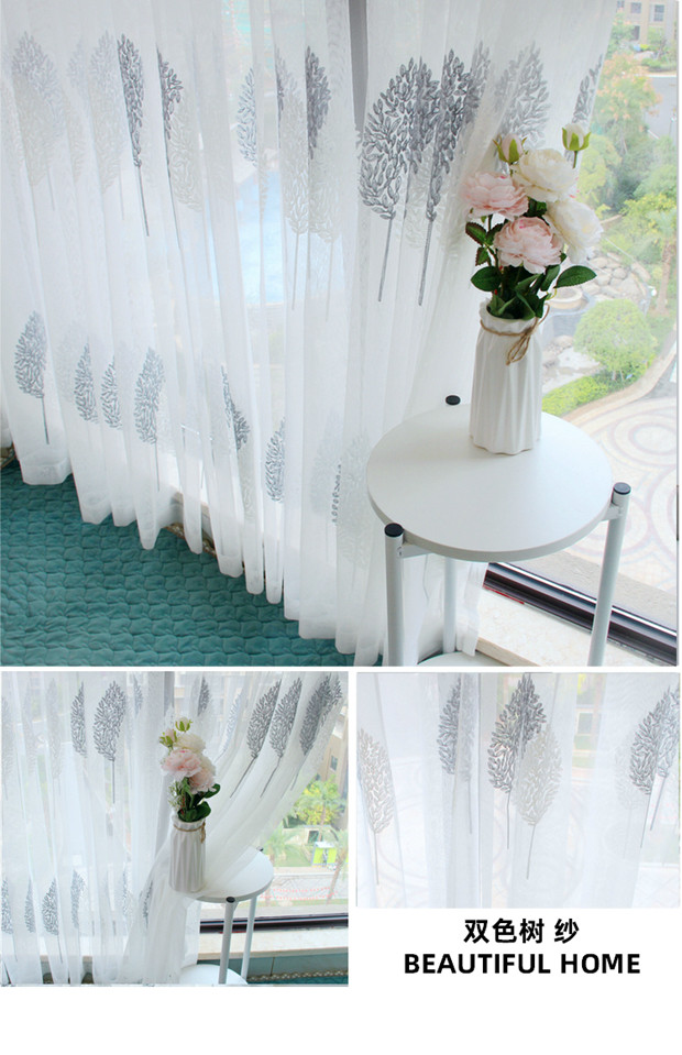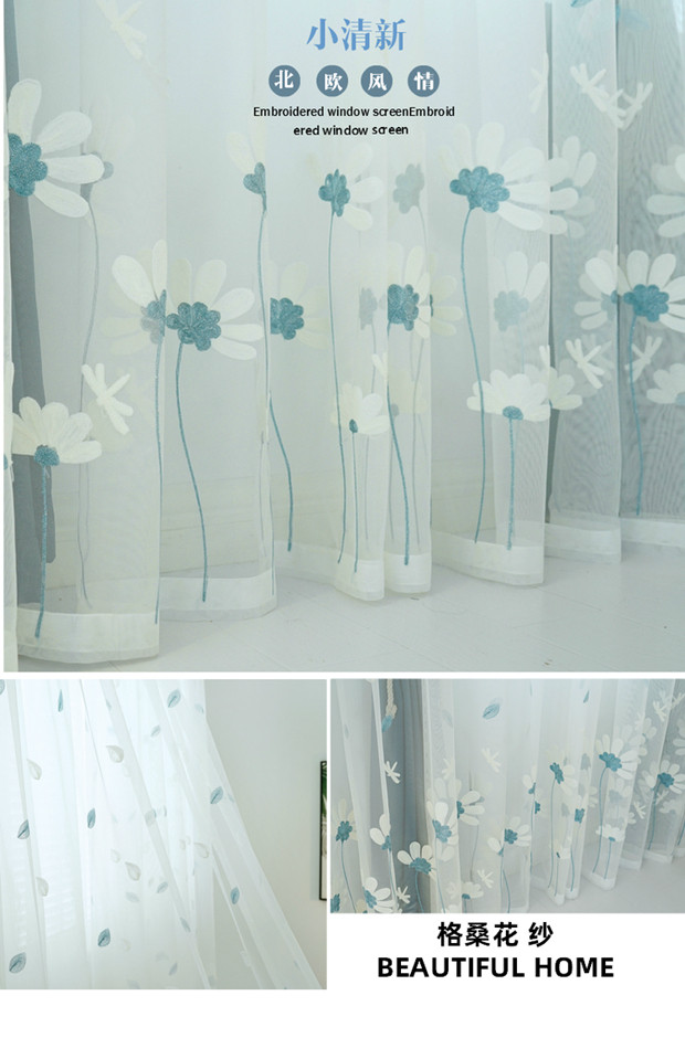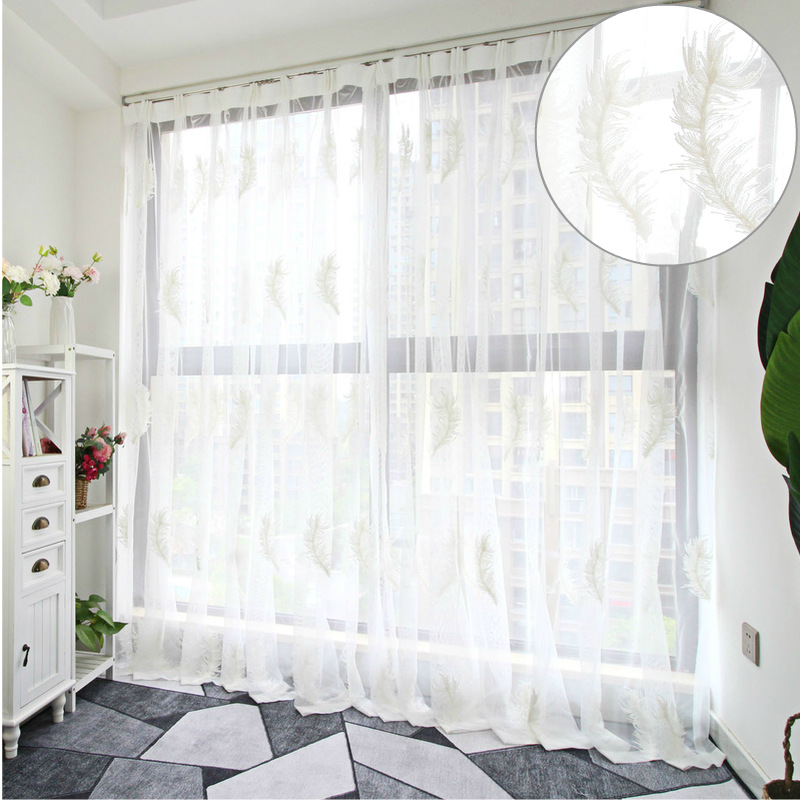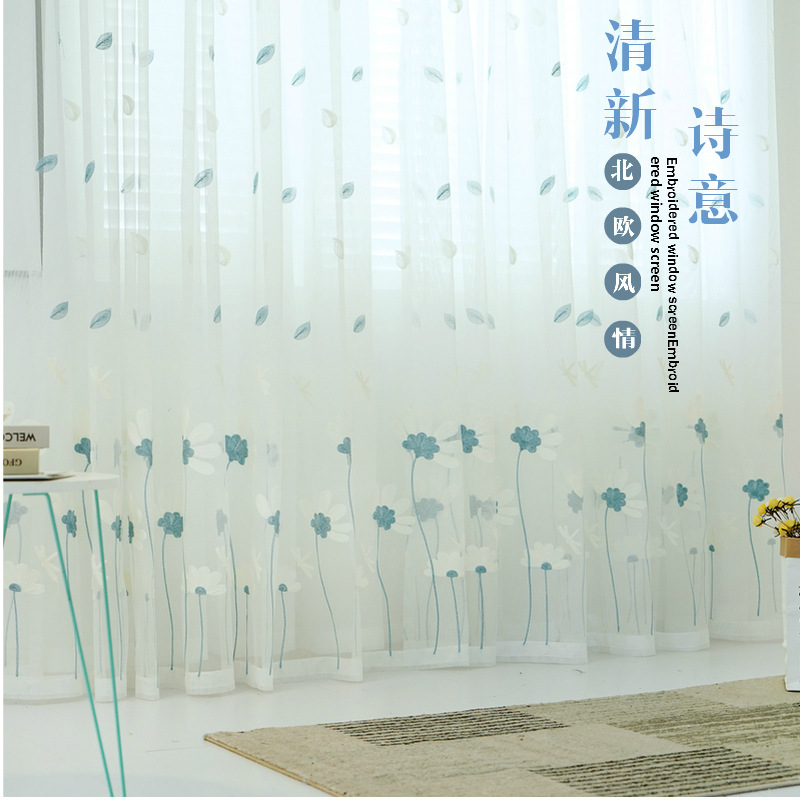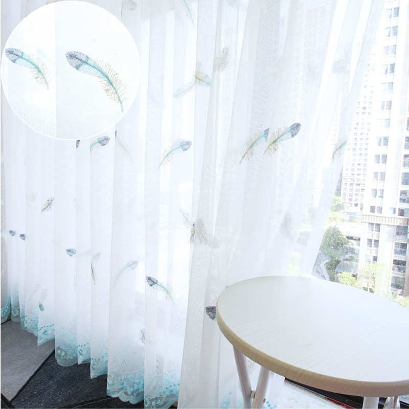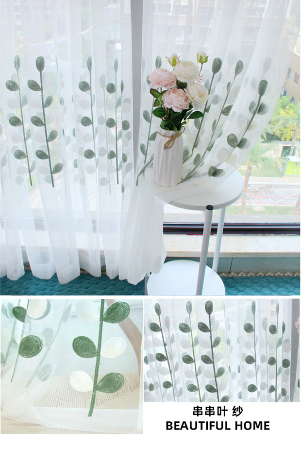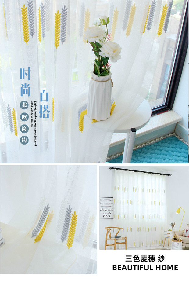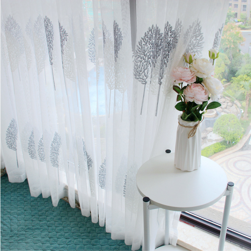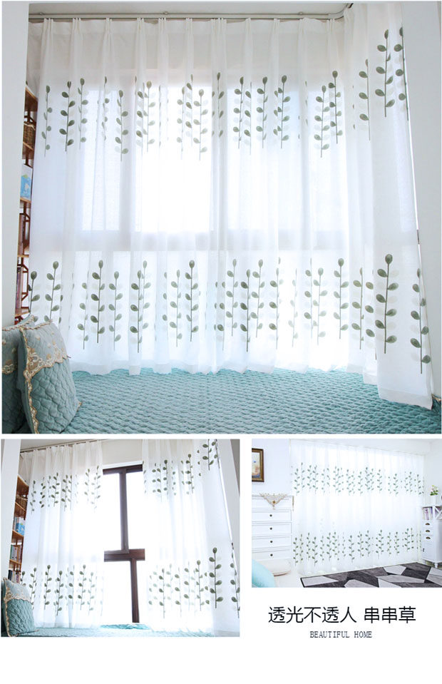 북유럽 현대 파티션 거즈 커튼 마감 수 놓은 창 화면 거실 침실 베이 창 커튼 단색 발코니 흰색 거즈스토어 가기