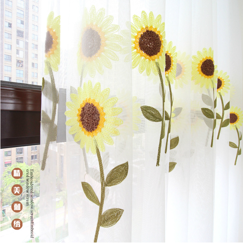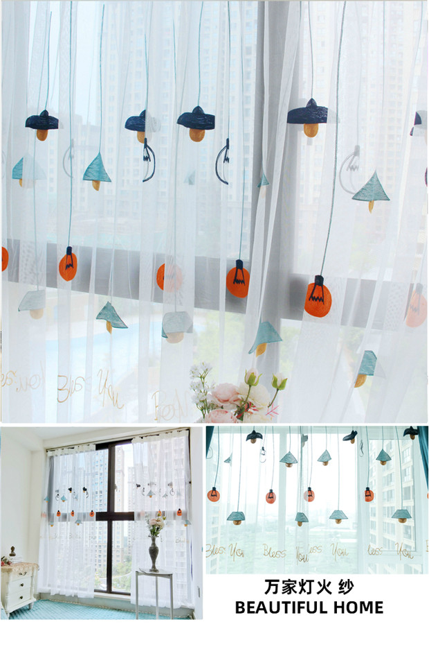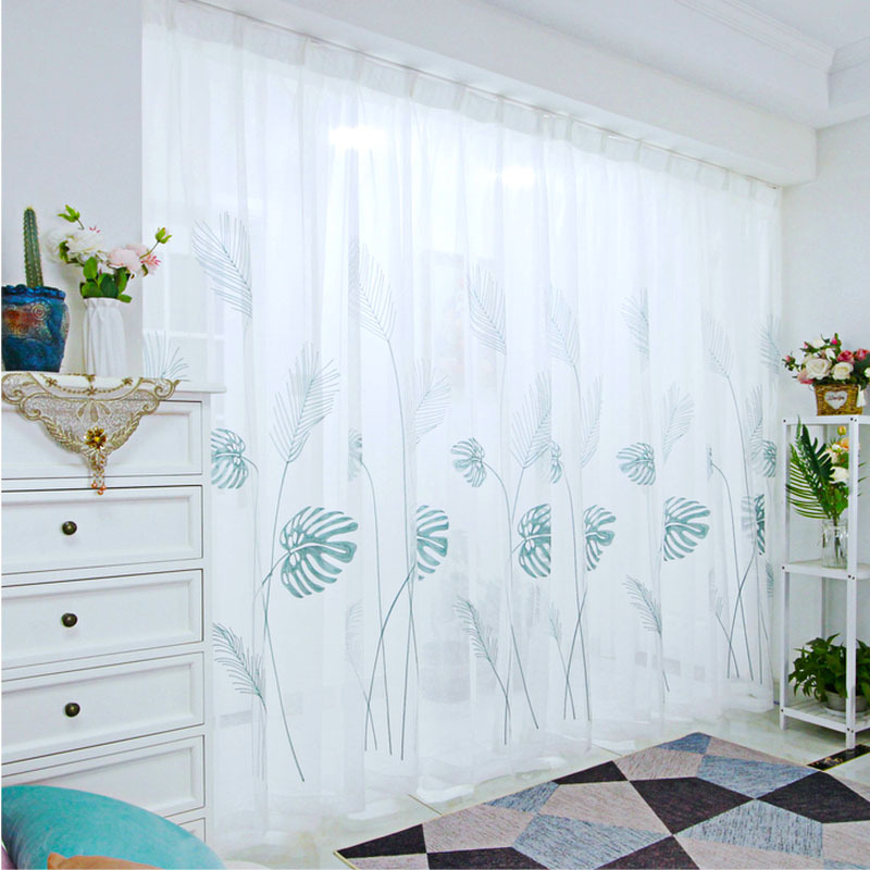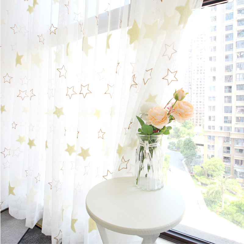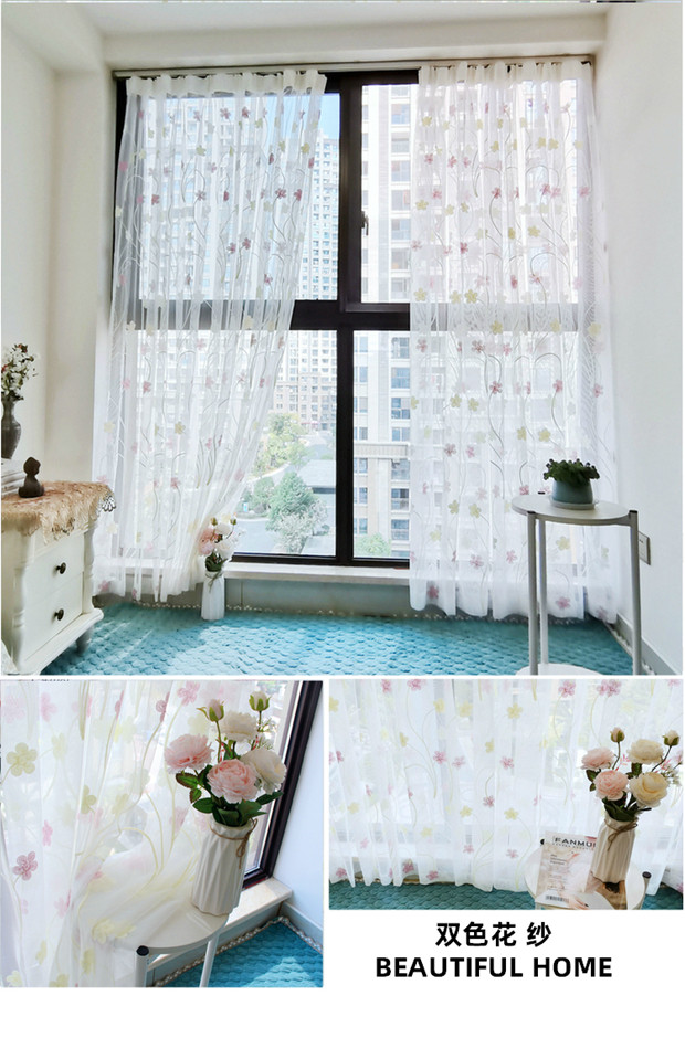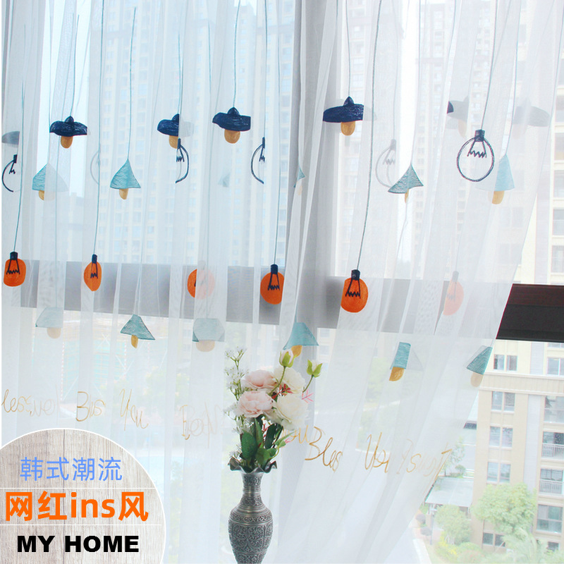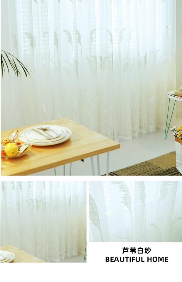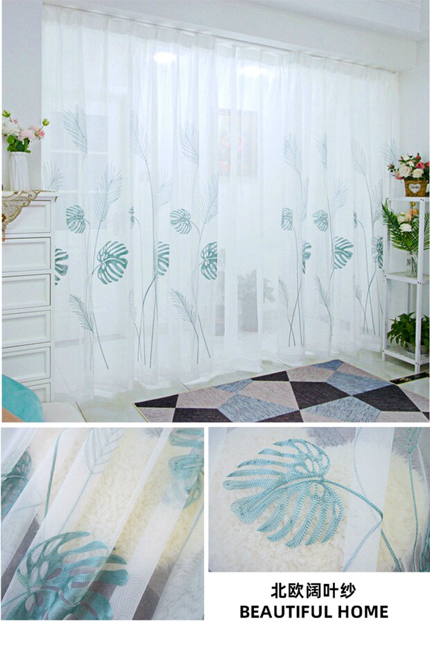 북유럽 현대 파티션 거즈 커튼 마감 수 놓은 창 화면 거실 침실 베이 창 커튼 단색 발코니 흰색 거즈스토어 가기