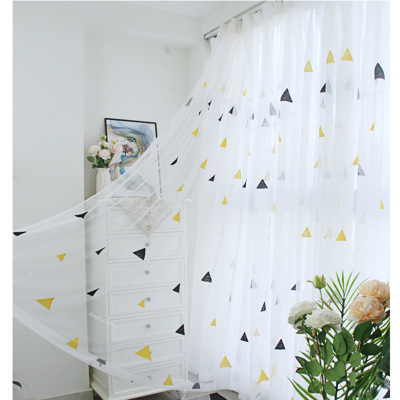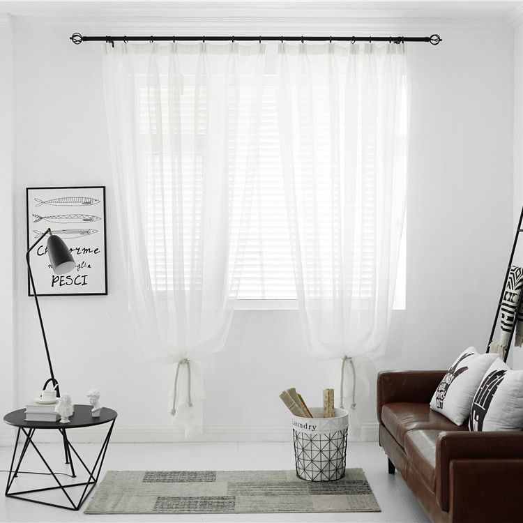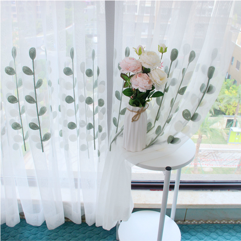 북유럽 현대 파티션 거즈 커튼 마감 수 놓은 창 화면 거실 침실 베이 창 커튼 단색 발코니 흰색 거즈
