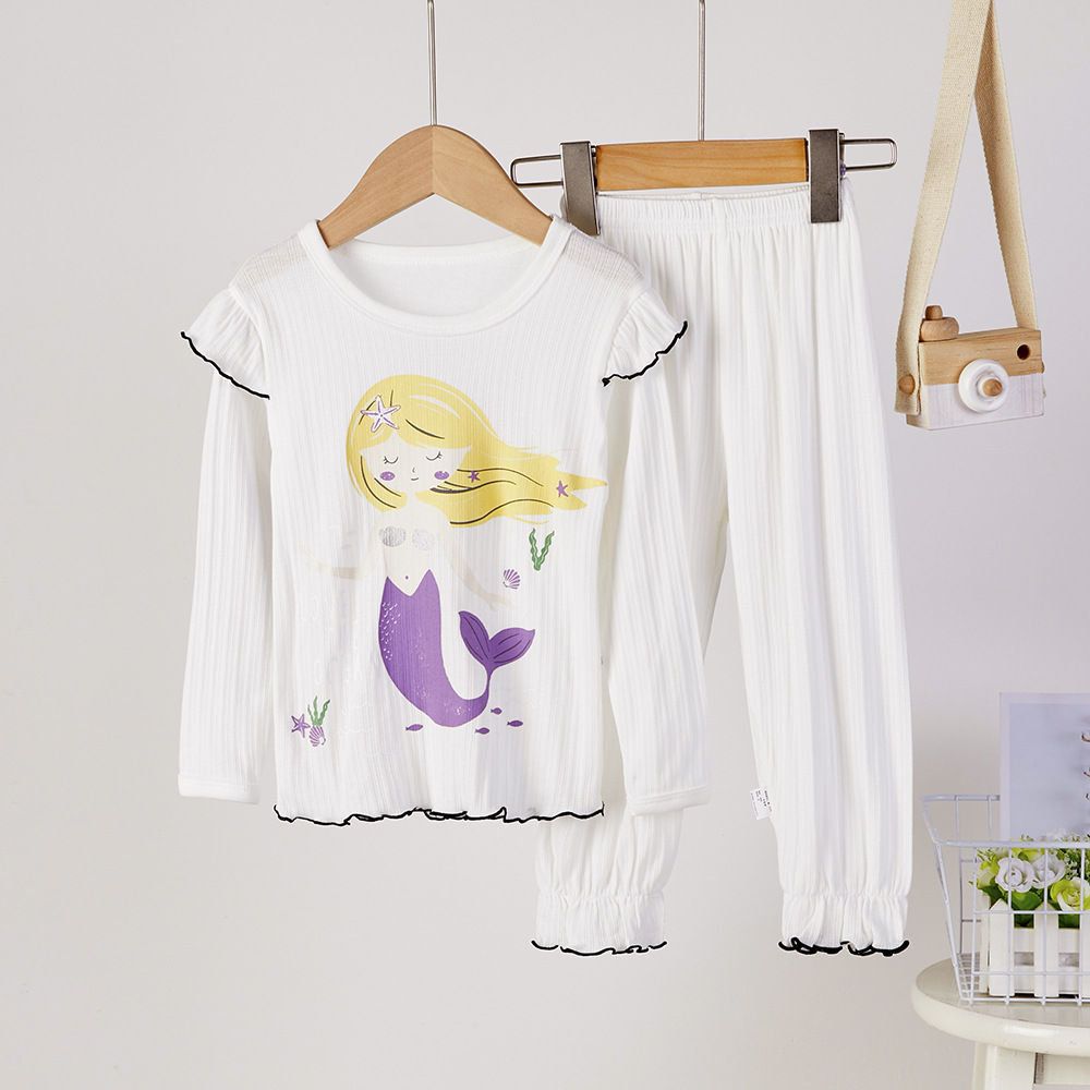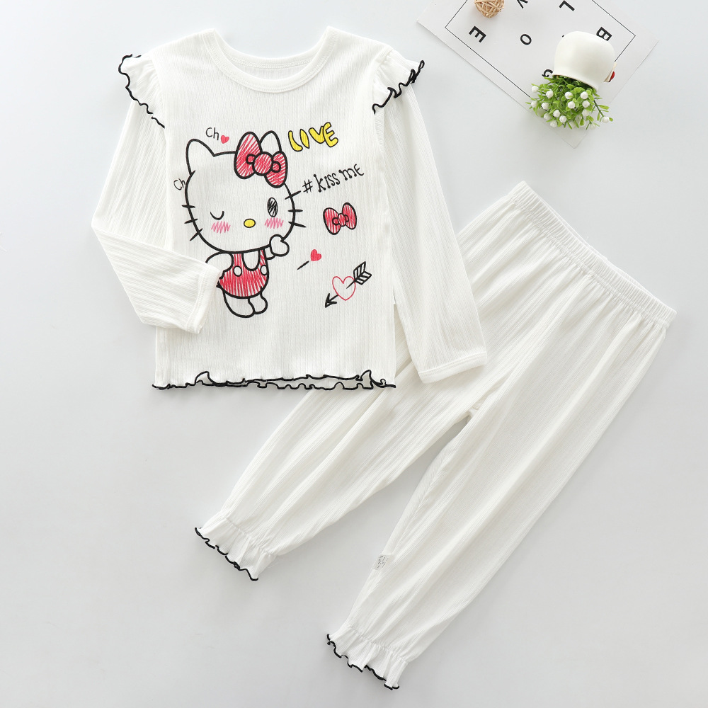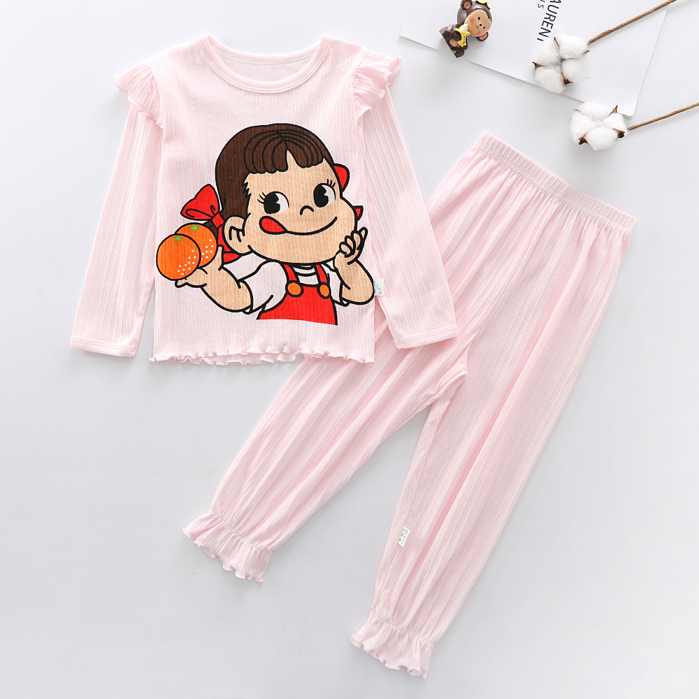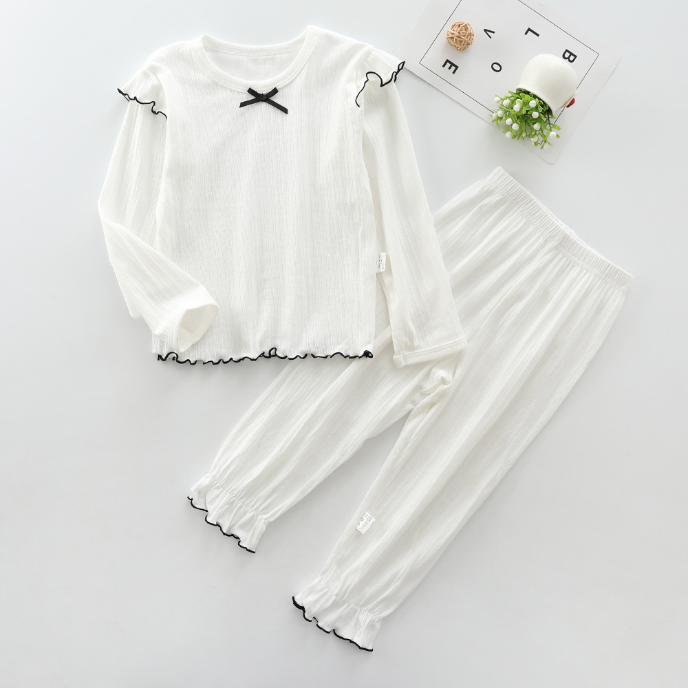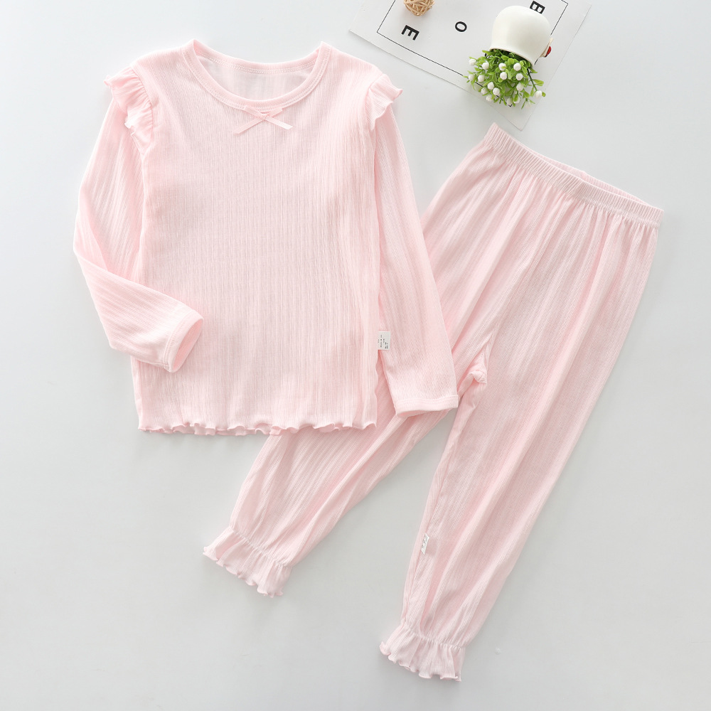 어린이 긴 소매 바지 세트 여성 아기 100 면 에어컨 의류 얇은 바닥 셔츠 가정 의류 제조 업체 도매