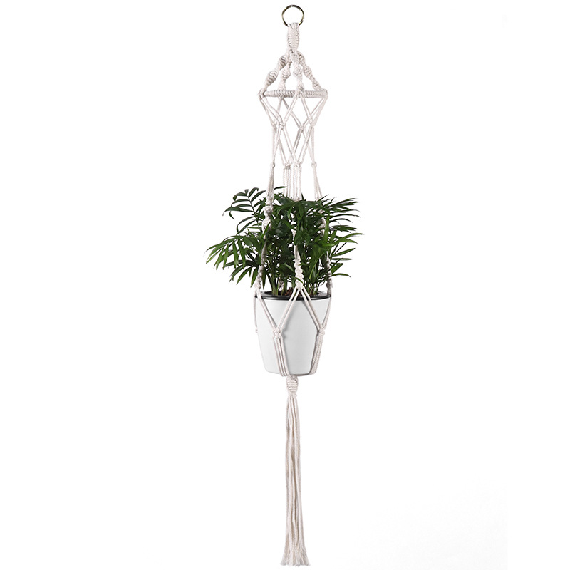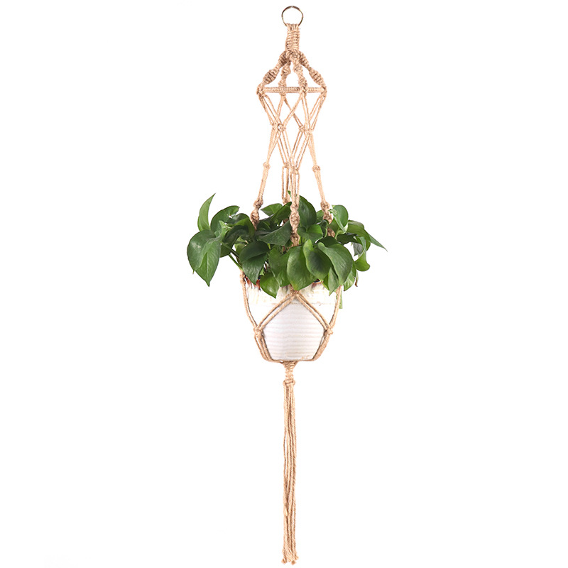 크로스 보더 꽃 냄비 그물 가방 손으로 짠 창조적 인 면 및 대마 밧줄 교수형 가방 정원 녹색 식물 화분 식물 교수형 바구니