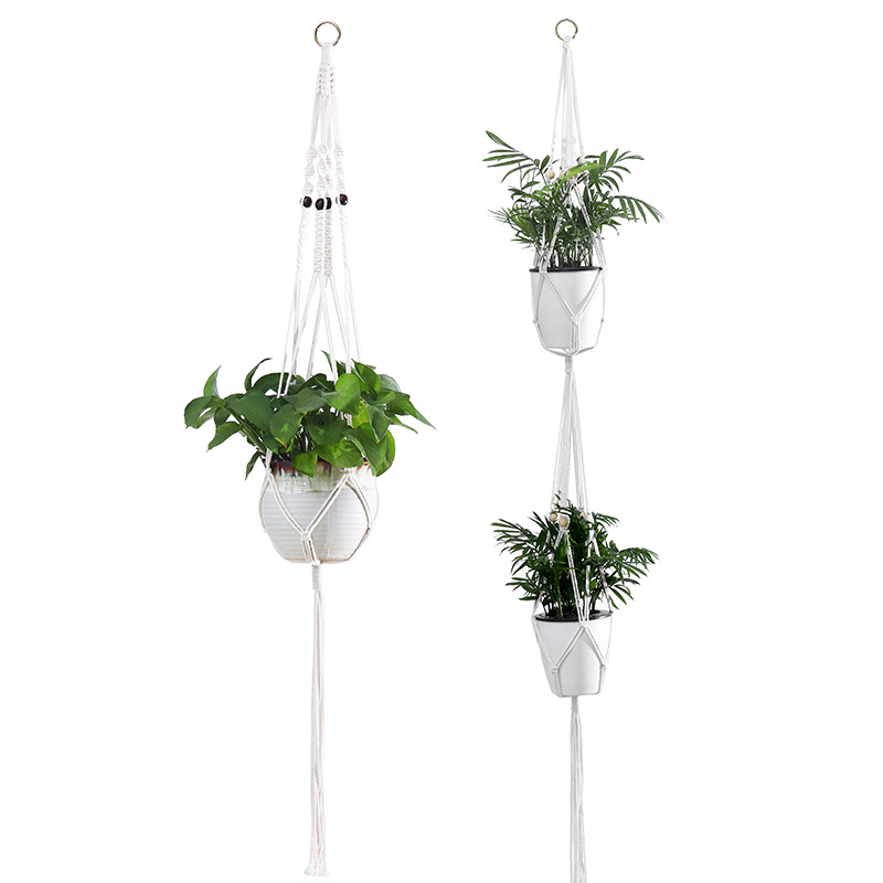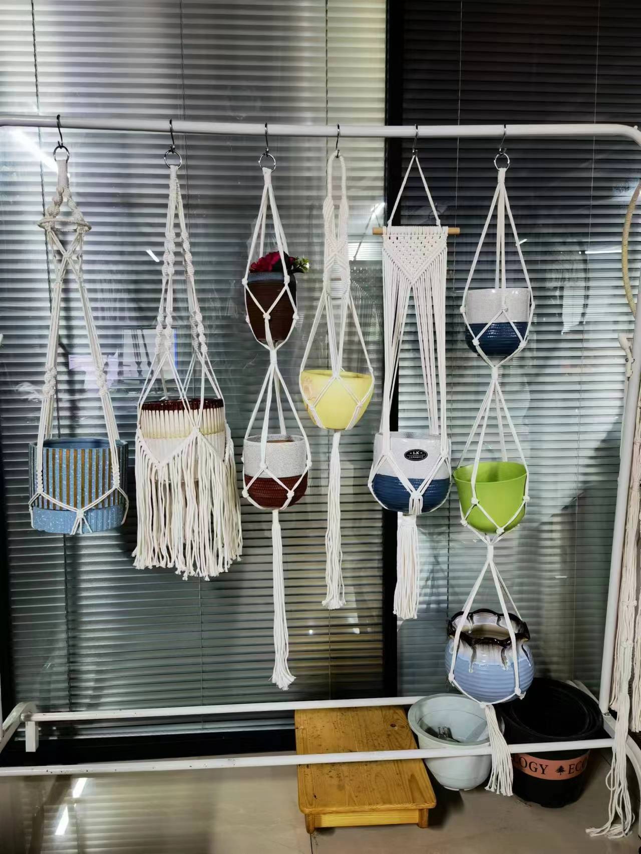크로스 보더 꽃 냄비 그물 가방 손으로 짠 창조적 인 면 및 대마 밧줄 교수형 가방 정원 녹색 식물 화분 식물 교수형 바구니스토어 가기