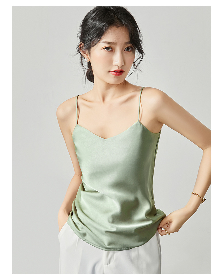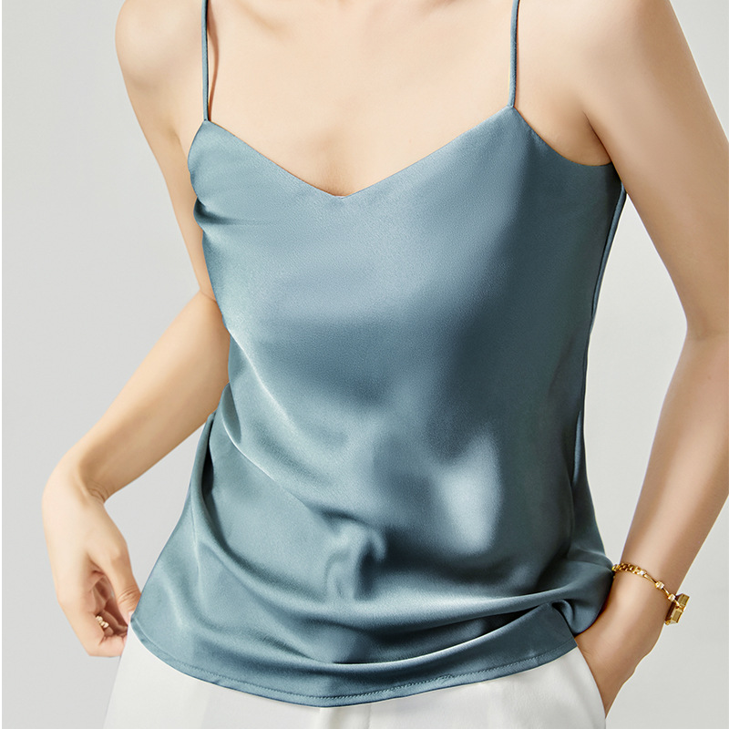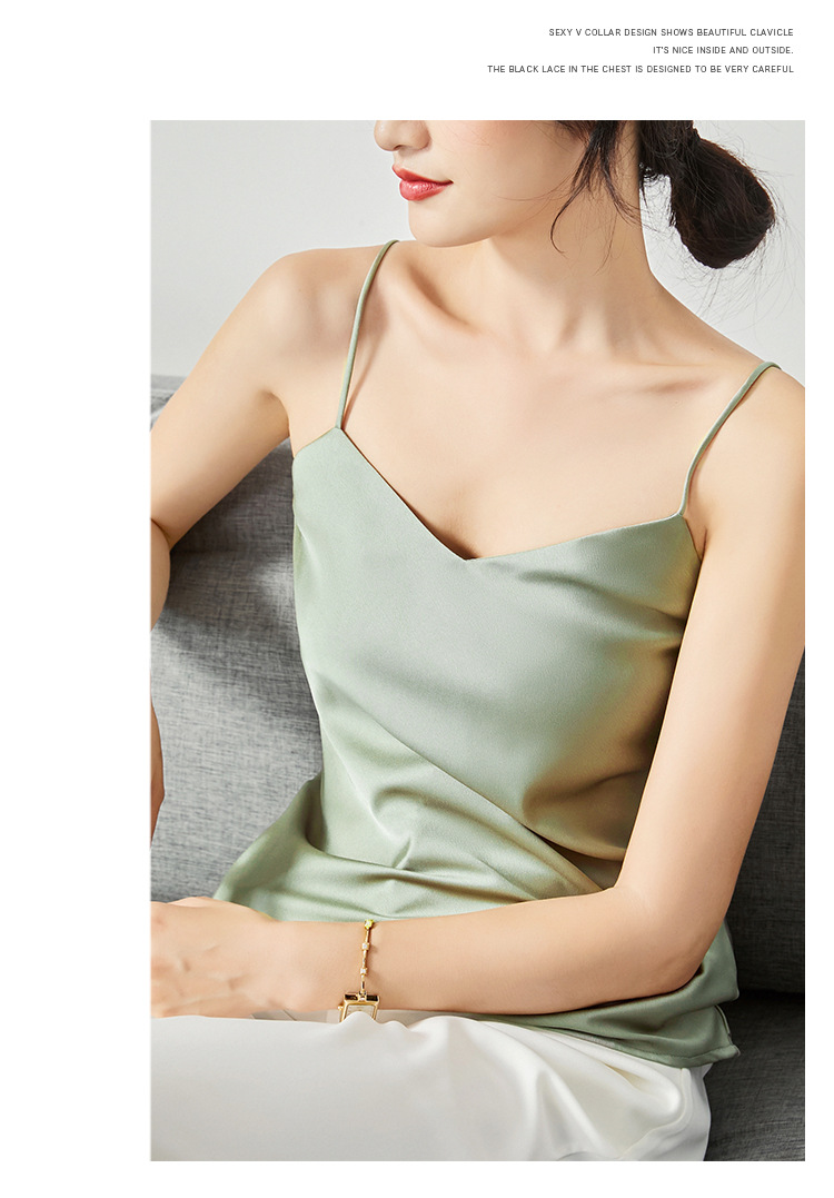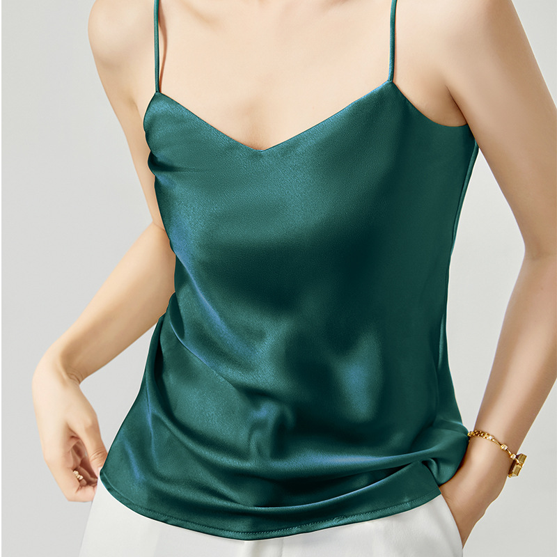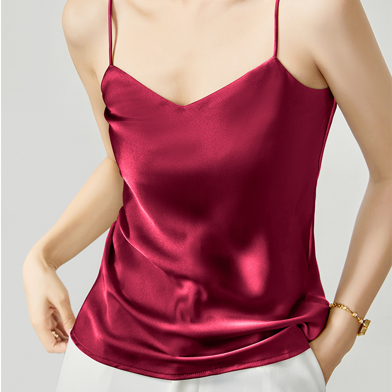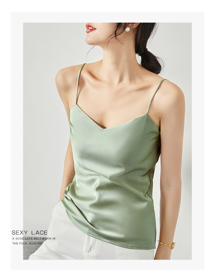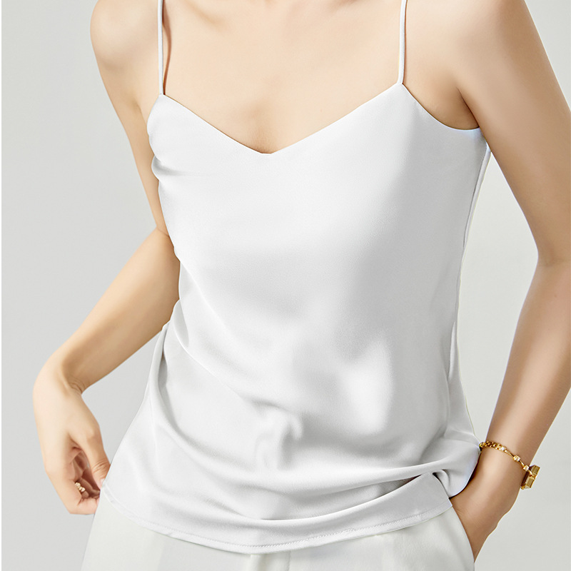 솔리드 컬러 V 넥 섹시한 외부 착용 양면 바닥 상단 여름 내부 착용 인공 실크 아세테이트 새틴 캐미솔 여성용스토어 가기