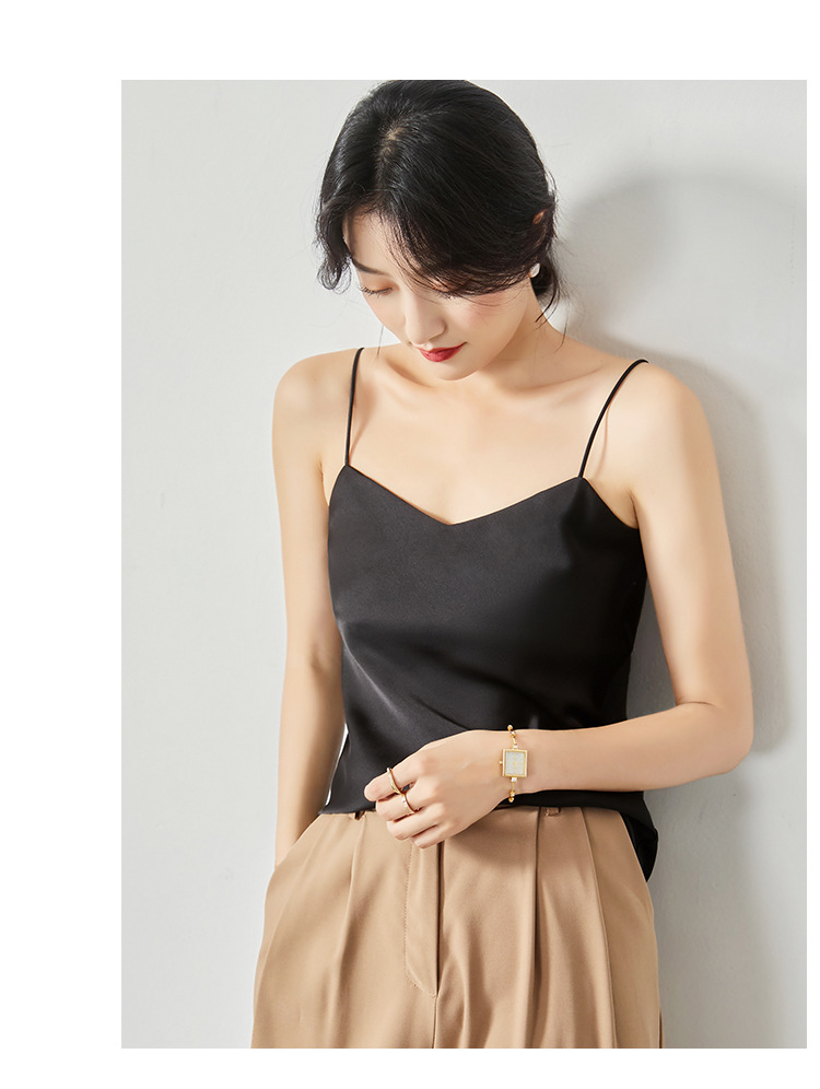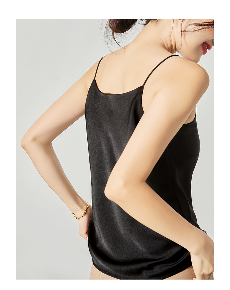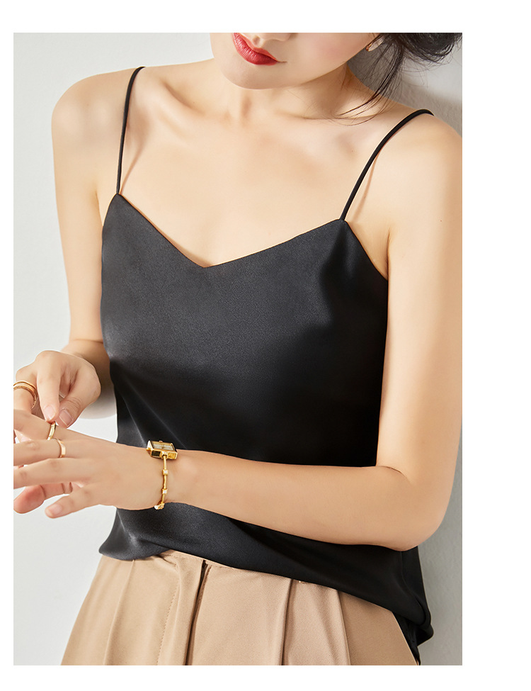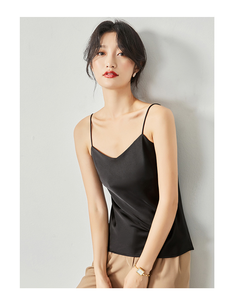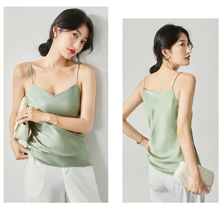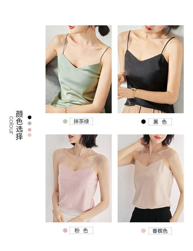 솔리드 컬러 V 넥 섹시한 외부 착용 양면 바닥 상단 여름 내부 착용 인공 실크 아세테이트 새틴 캐미솔 여성용스토어 가기