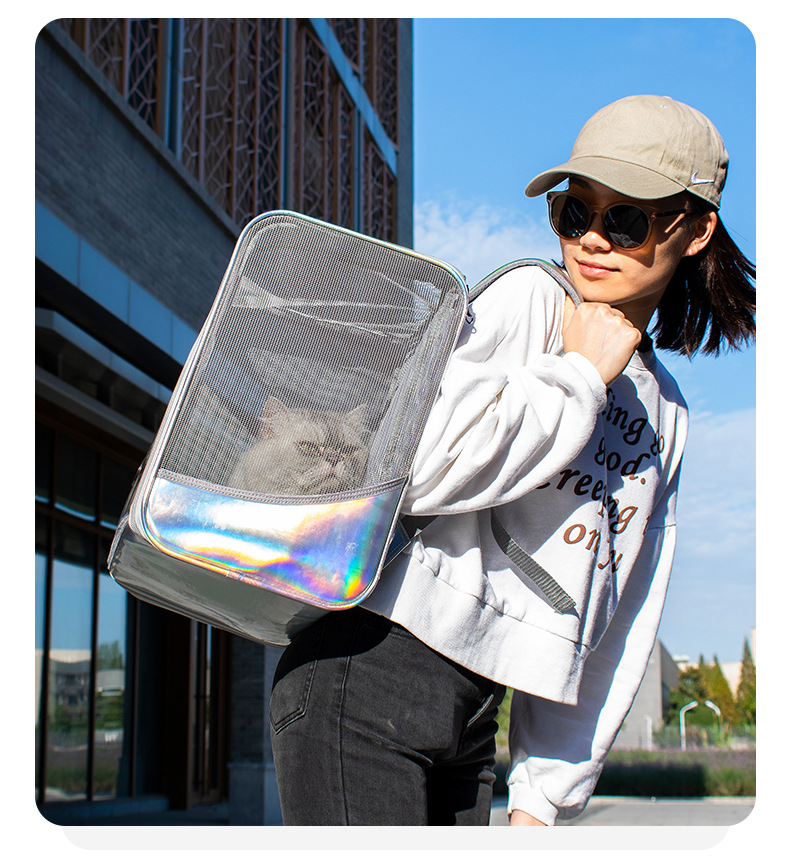 Leyoupai 레이저 어깨 투명 고양이 가방 대형 공간 애완 동물 배낭 휴대용 대형 공간 애완 동물 고양이 가방
