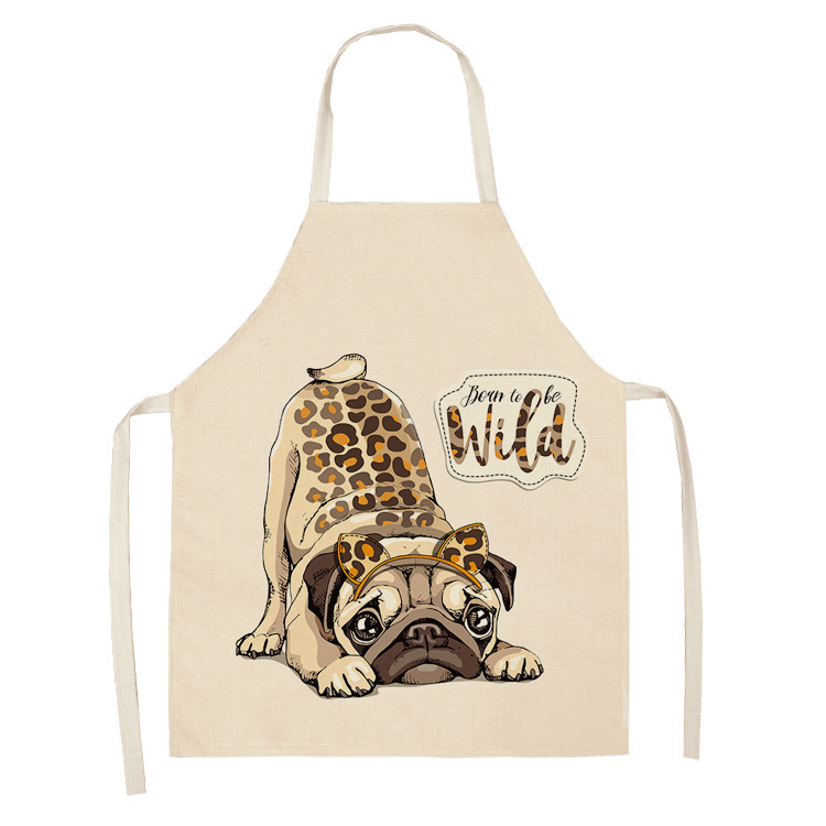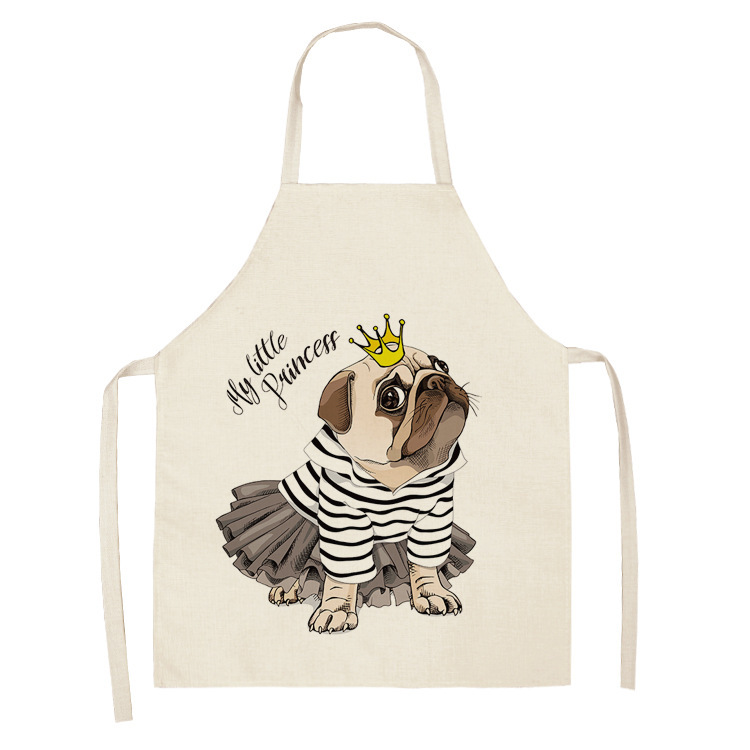 귀여운 만화 동물 린넨 개 인쇄 앞치마 가구 커플 앞치마 방수 방진 앞치마