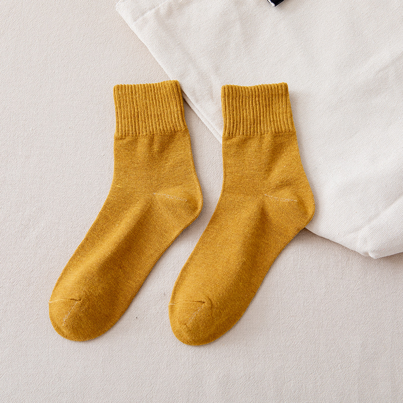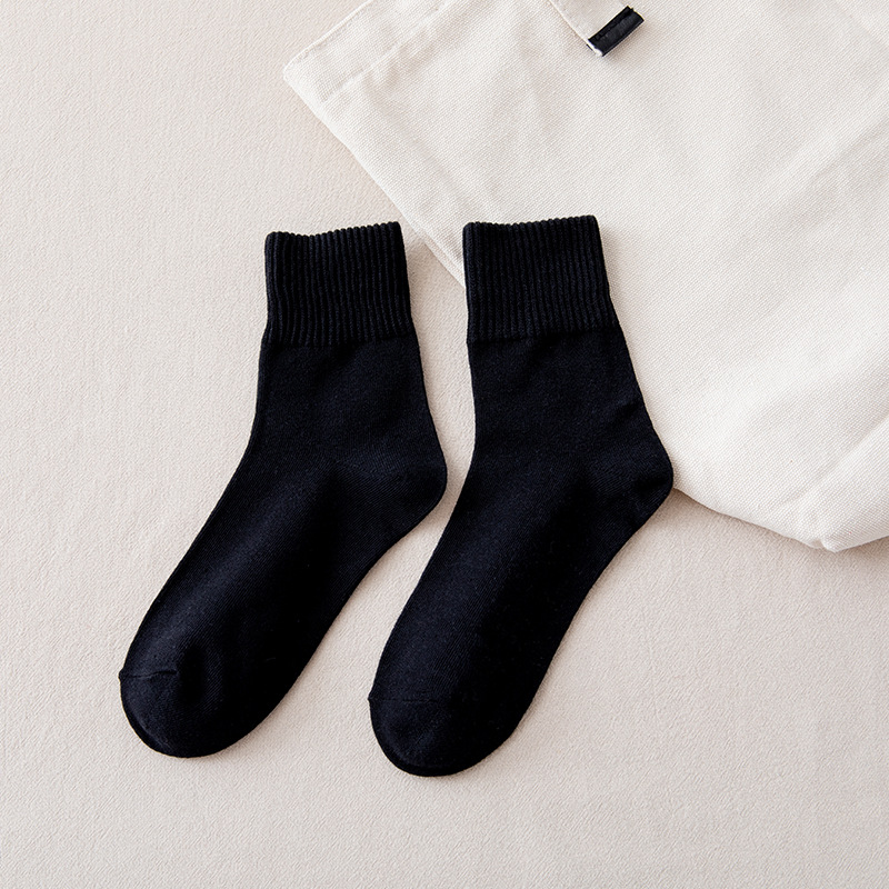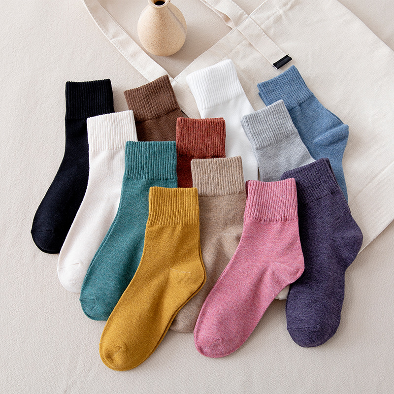 가을과 겨울 숙녀 튜브 양말 높은 Luokou 면화 양말 여성 단색 캐주얼 편안한 통기성 면화 양말 제조 업체 도매