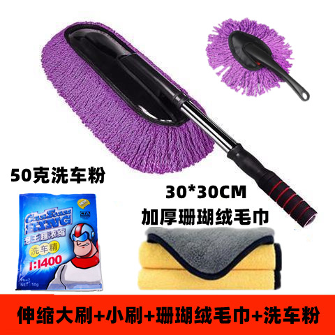 • 퍼플 큰 브러시 [개폐식] + 작은 브러시 + 산호 양털 타월 + 세차 파우더
