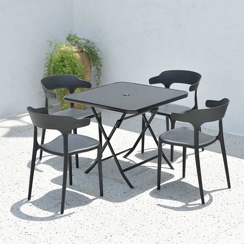 • (4 + 1) 직경 80cm 검정 실크 글라스 사각 테이블 (우산 구멍이 있는 탁상)