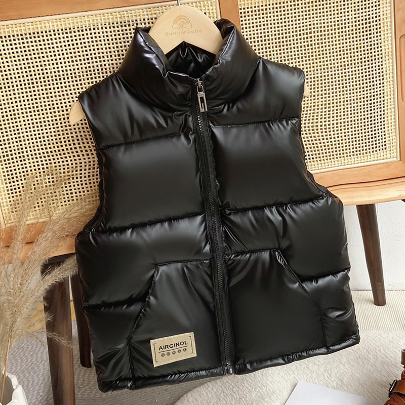 어린이 스탠드 칼라 면 조끼 2023 새로운 봄 가을과 겨울 두꺼운 양복 조끼 밝은 얼굴 겉옷 다운 코튼 조끼 트렌디 한 어린이 스타일스토어 가기