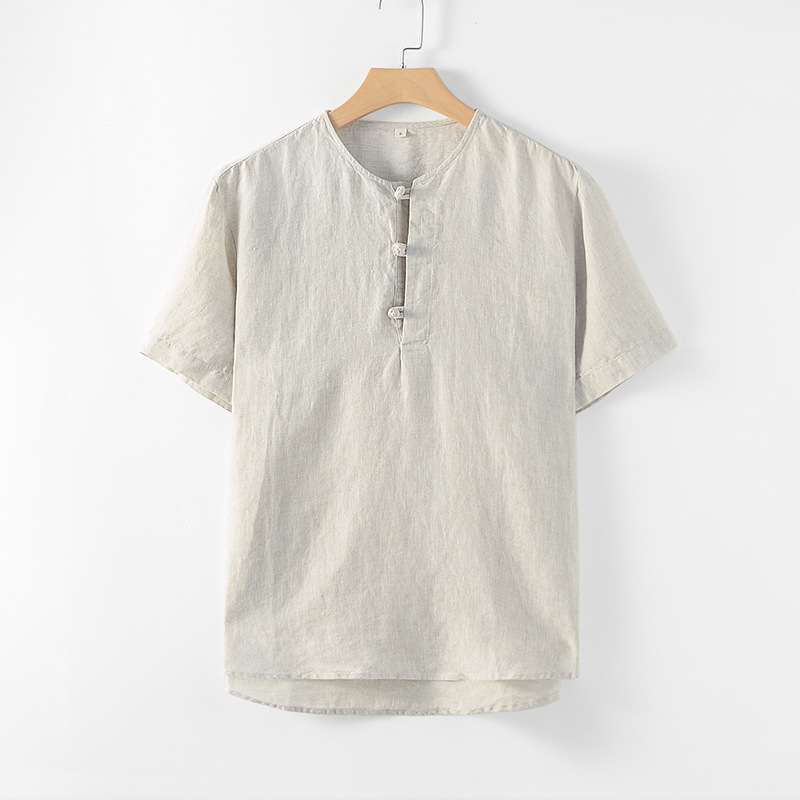 여름 린넨 남성용 느슨한 얇은 빈티지 스타일 탑 캐주얼 버클 중국 반팔 164