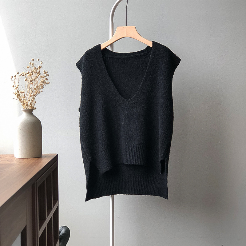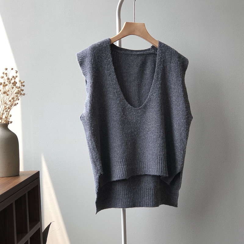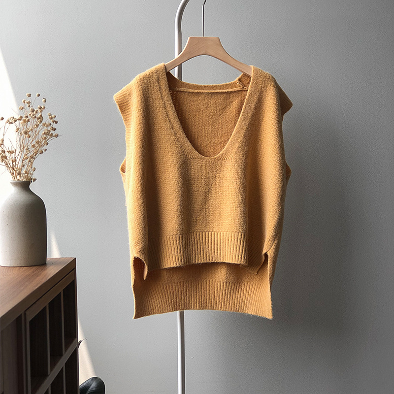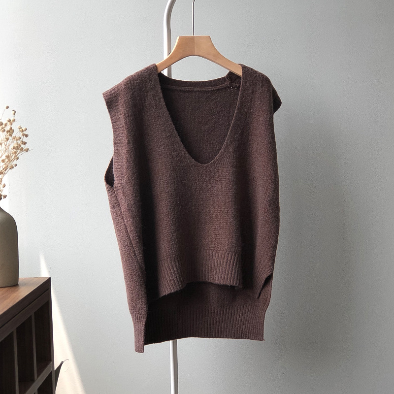 여성용 이중 니트 조끼 가을 겉옷 레이어드 v 넥 한국 스타일 캐주얼 루즈 패션 민소매 조끼 여성 P904스토어 가기