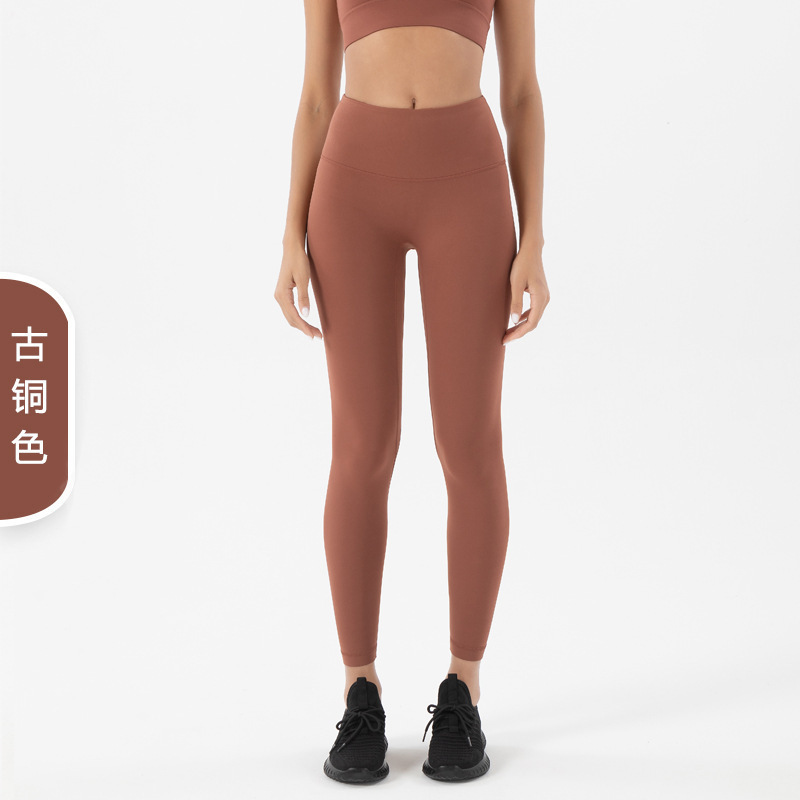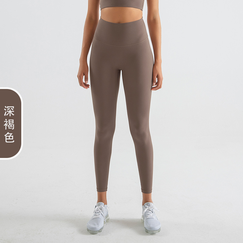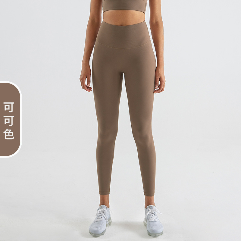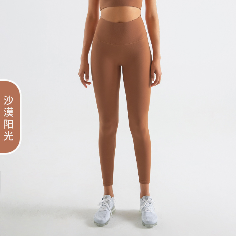 당황하지 않는 라인 양면 샌딩 스포츠 피트니스 바지 하이 웨이스트 엉덩이 리프팅 원활한 알몸 요가 바지 얇은 여성용 여름