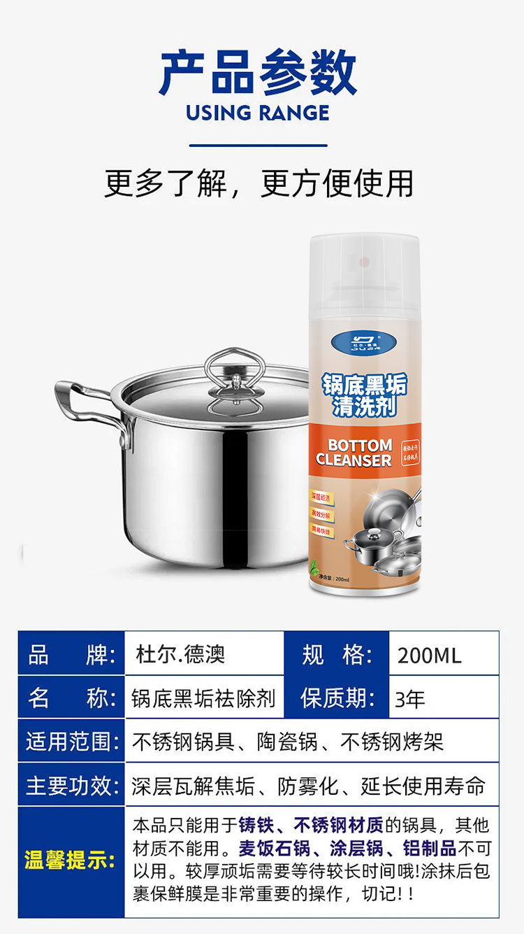 Duerdeao 냄비 바닥 검은 먼지 청소 에이전트 가정용 주방 기름 청소 녹 제거 강한 오염 제거 스테인레스 스틸 청소 크림스토어 가기