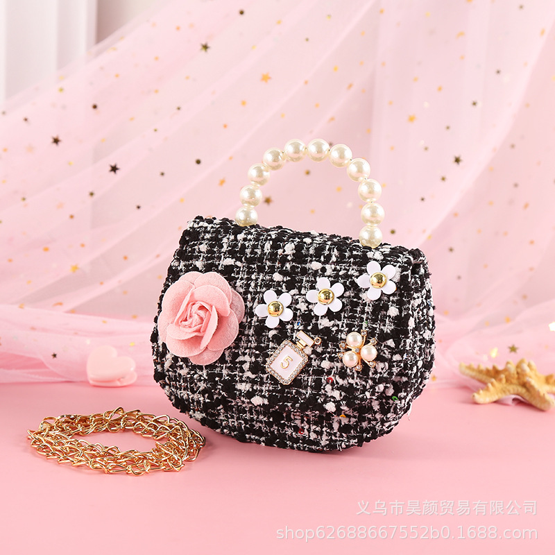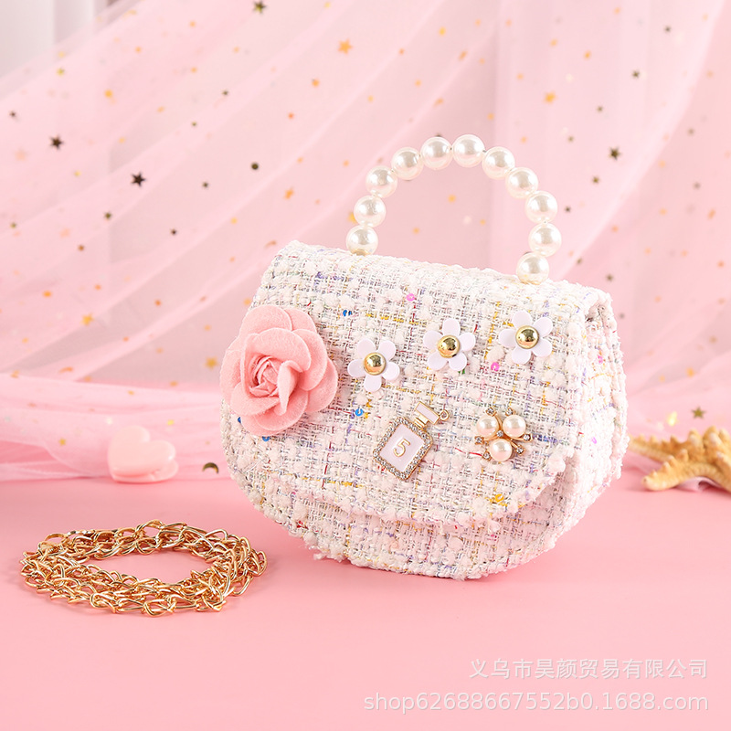 작은 향기 스타일 꽃 작은 신선한 자연 스타일 어린이 휴대용 크로스 바디 꽃잎 이중 목적 진주 소녀 가방 618