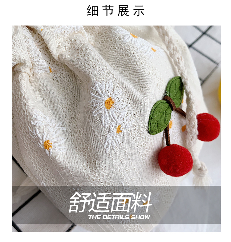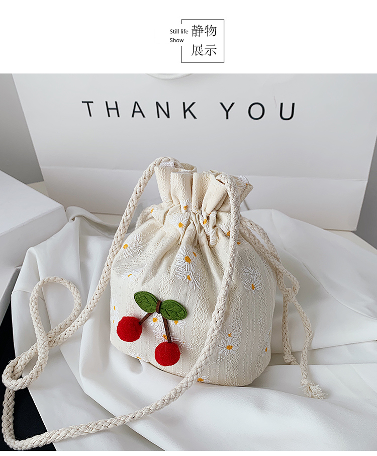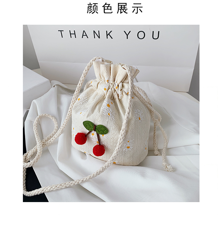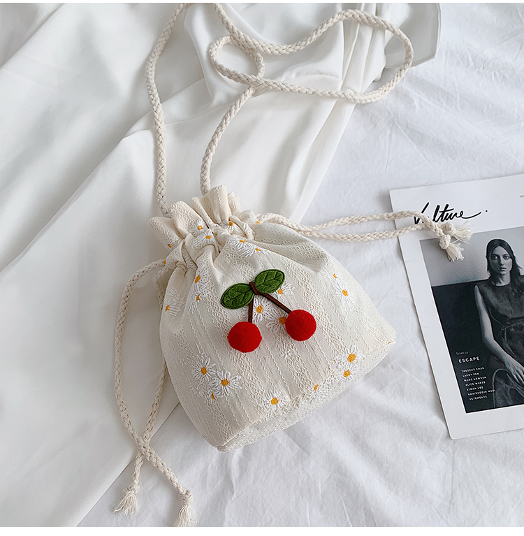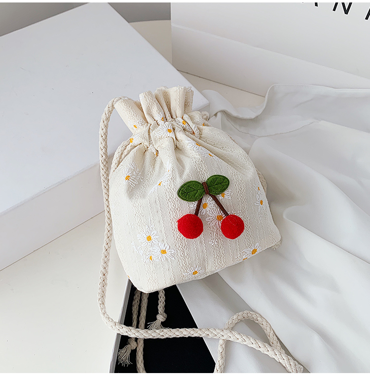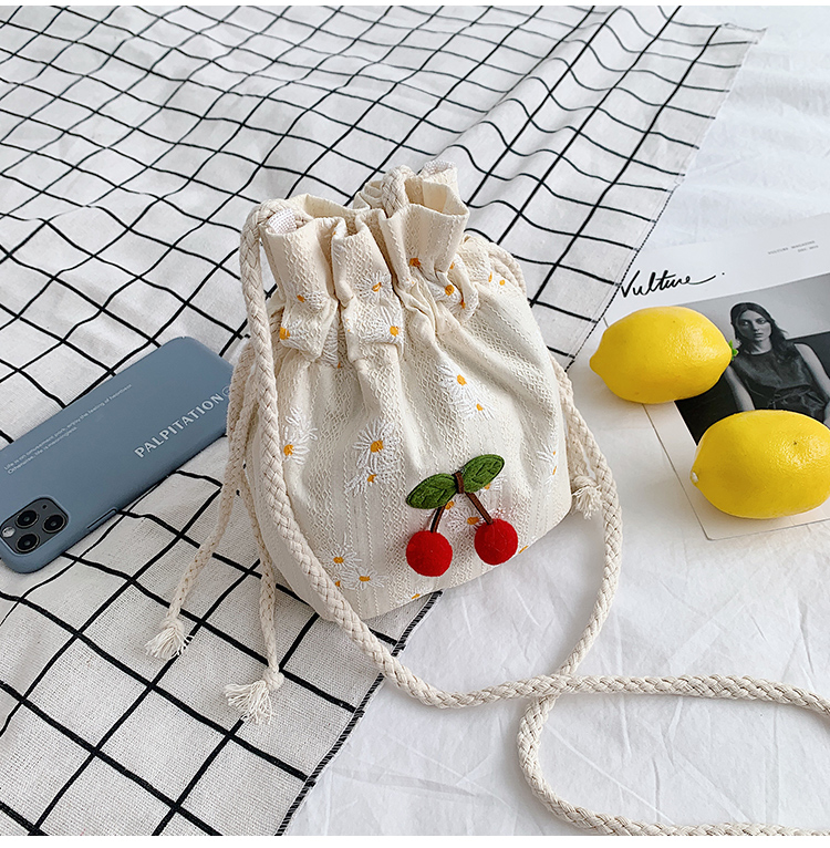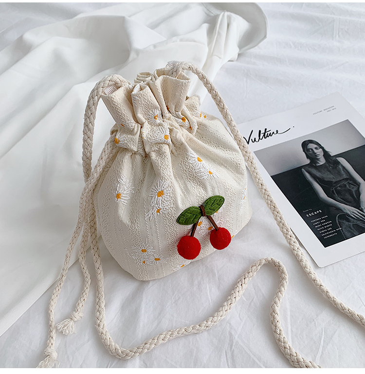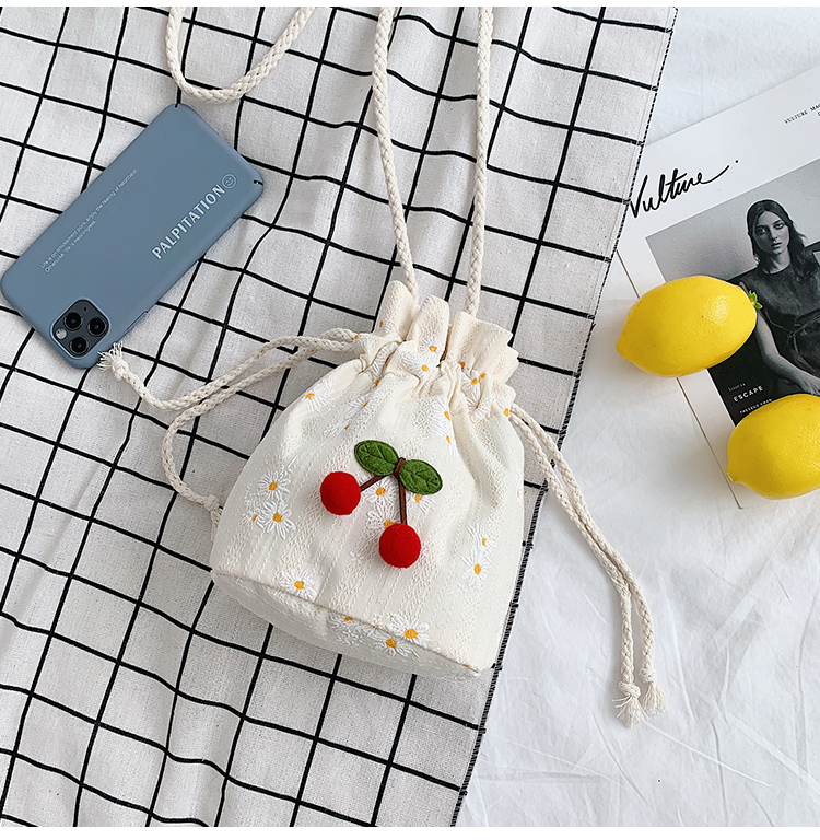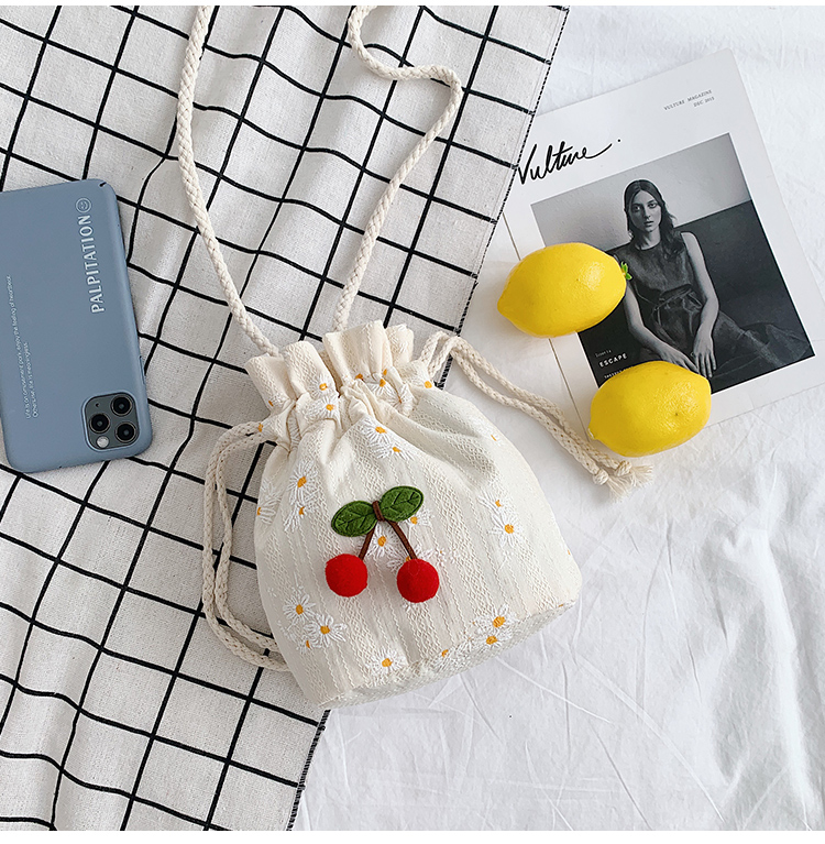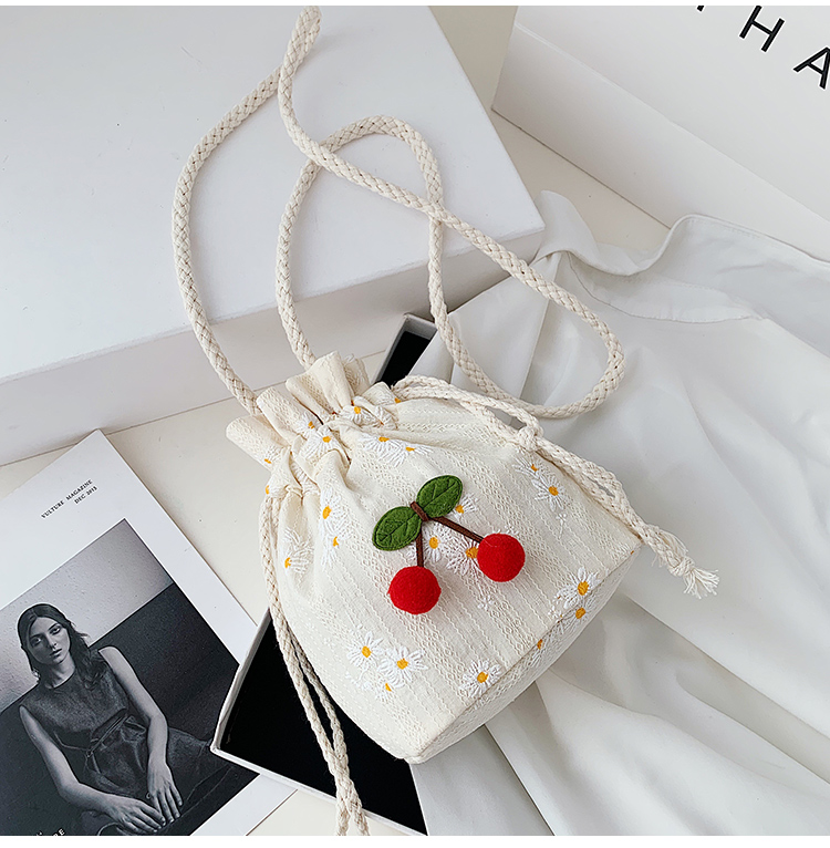 짠 체리 캔버스 버킷 작은 가방 여성 가방 2020 여름 새로운 유행 한국 스타일 독특한 숄더 크로스 바디 백스토어 가기