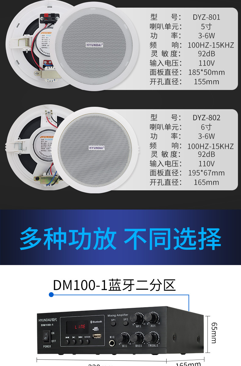 현대 천장 스피커 파워 앰프 방송 오디오 슈퍼마켓 배경 음악 시스템 블루투스 파티션 스피커